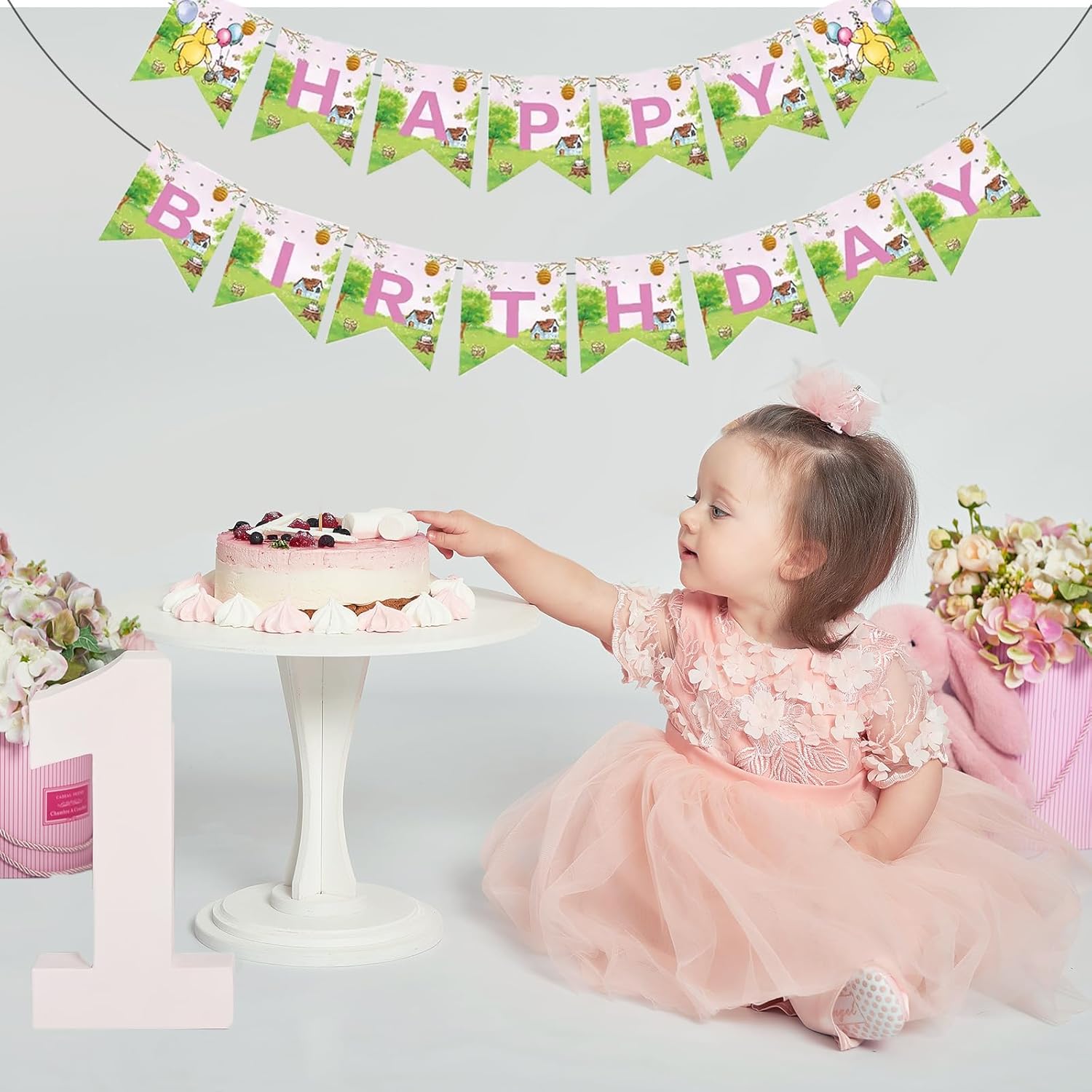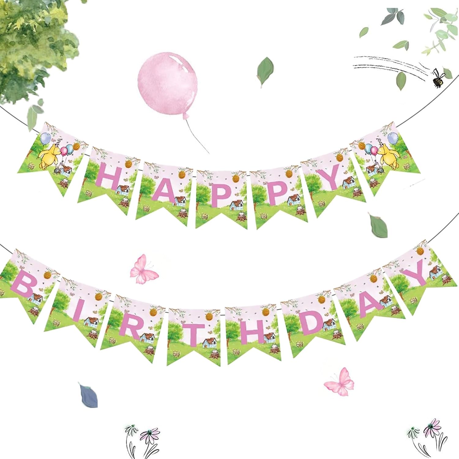 - HIGH QUALITY: Winnie happy birthday banner Made of high quality ECO-Friendly paper, durable and reusable. An excellent background for birthday party photos, elegant birthday garland decoration, Beautiful and lively colors add luster to the space decoration.