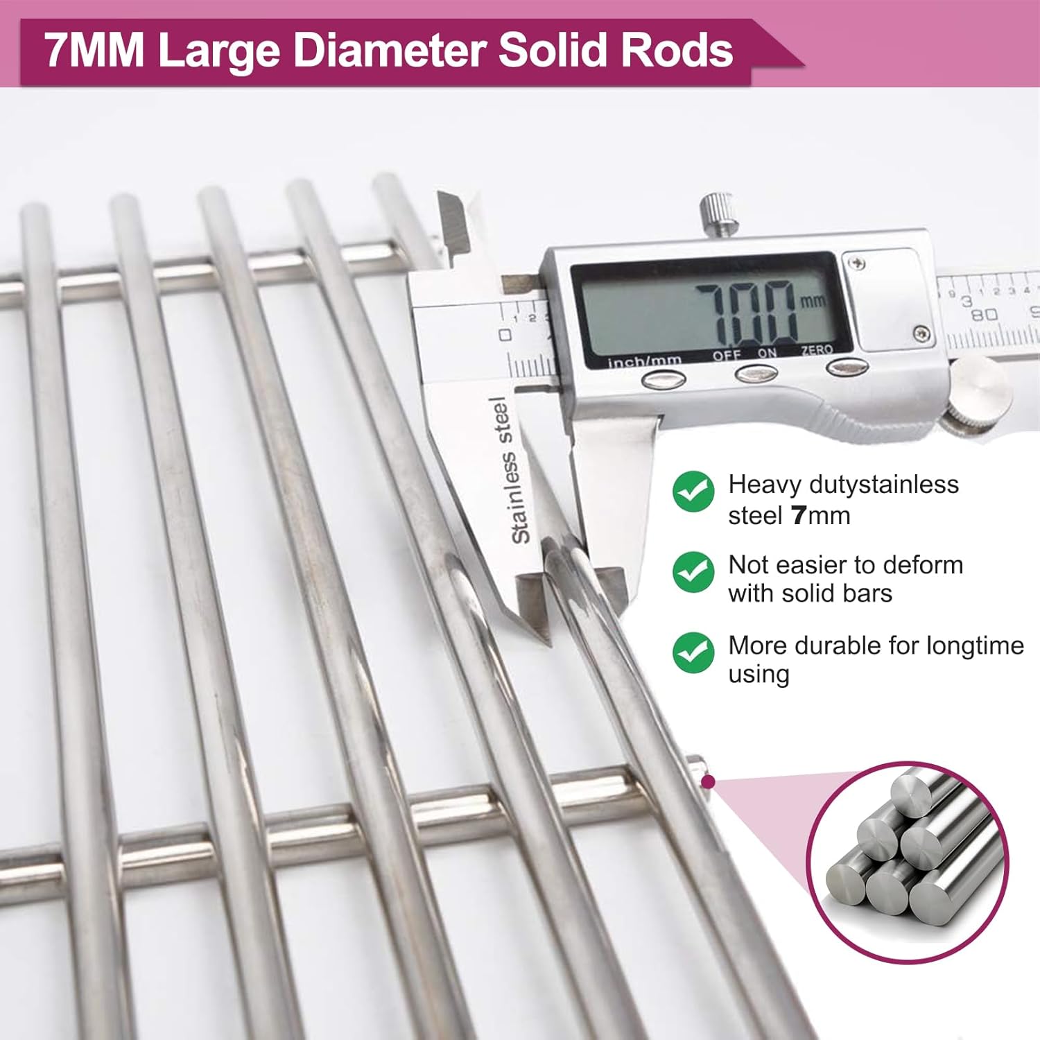 - Stainless Steel Grid Grates Dimension: 17.5 x 10.2 Inches Each, 2-pack.16GA Porcelain Steel Heat Plates Dimension: 15.3"L x 3.5"W, 3-Pack; Weber Part Number: 7635,Two main burners measure 18", Crossover tube is 10 1/2" long, Weber Part Number: 69785