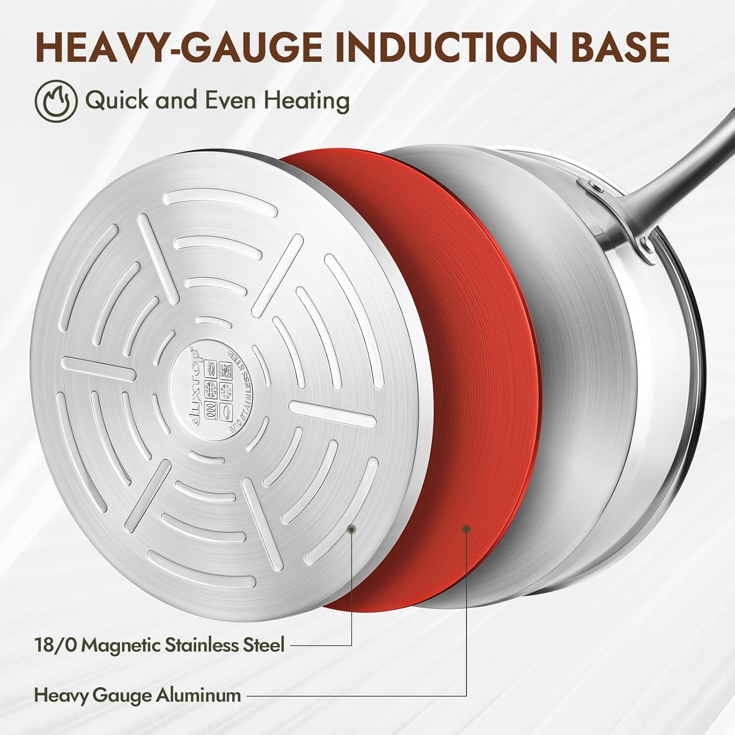 - EVEN HEAT: Heavy-duty aluminum core combined with an 18/0 magnetic stainless steel base ensures consistent heat distribution and long-lasting durability. Compatible with all stovetops, including induction