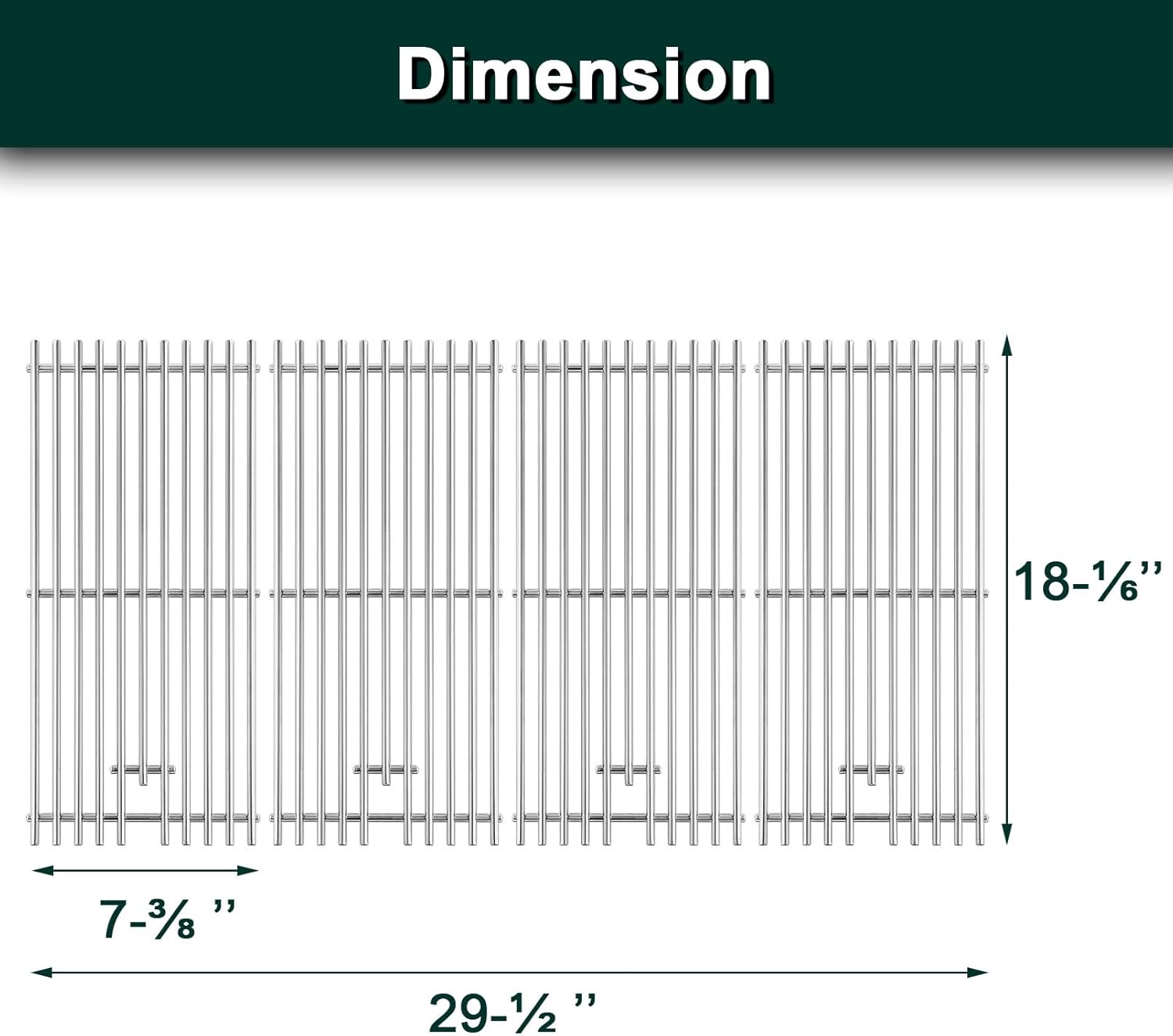 - 【Dimension and Package】 7 3/8’’ x 18 1/6’’ per grill grates replacement rcs, 29 1/2’’ x 18 1/6’’ for 4 Pcs rcs grill replacement grates, total 4 Pcs in 1 Pack rcs grill parts (Please make sure the rjc008p cooking grid size and package is perfectly fit your rcs rjc32a grill parts)