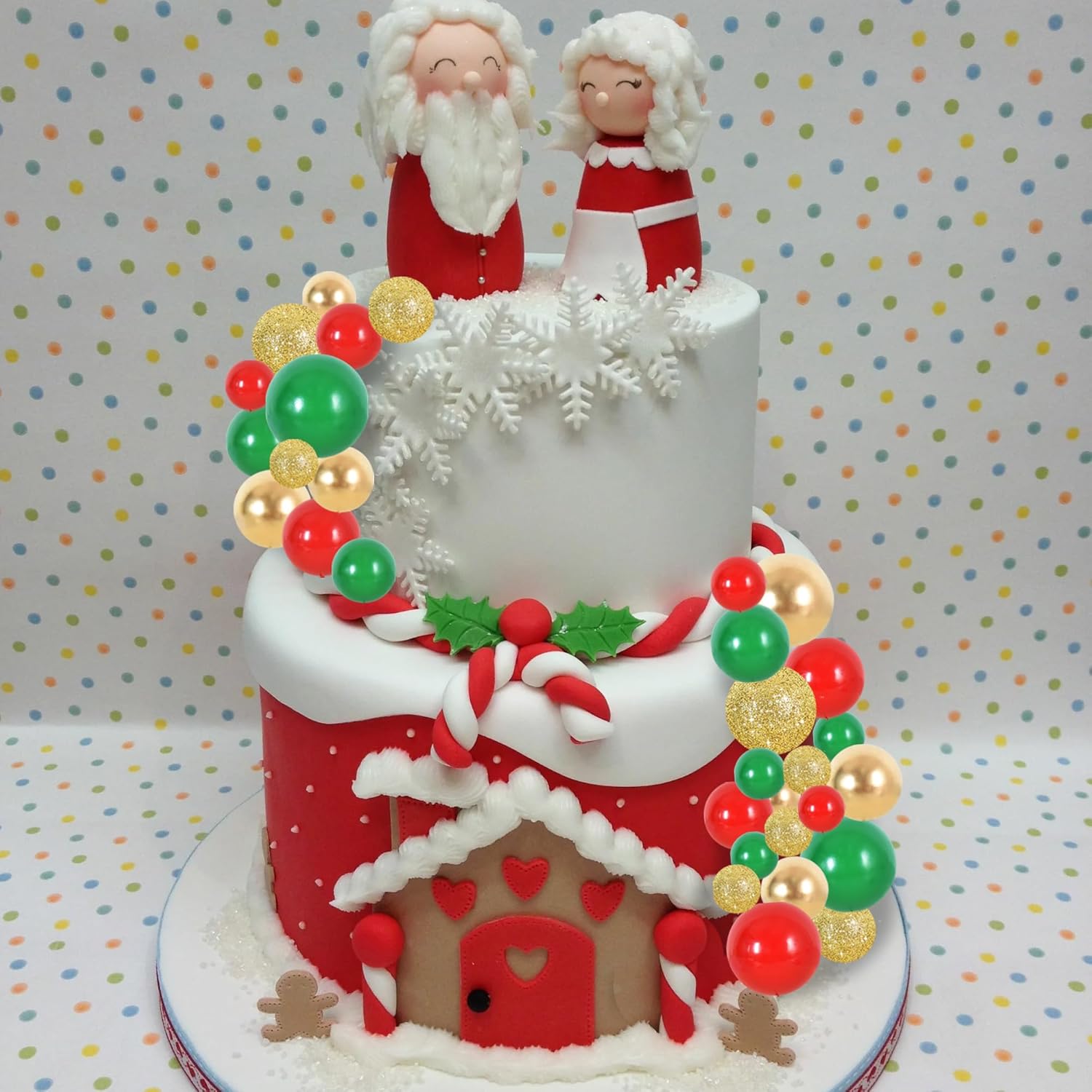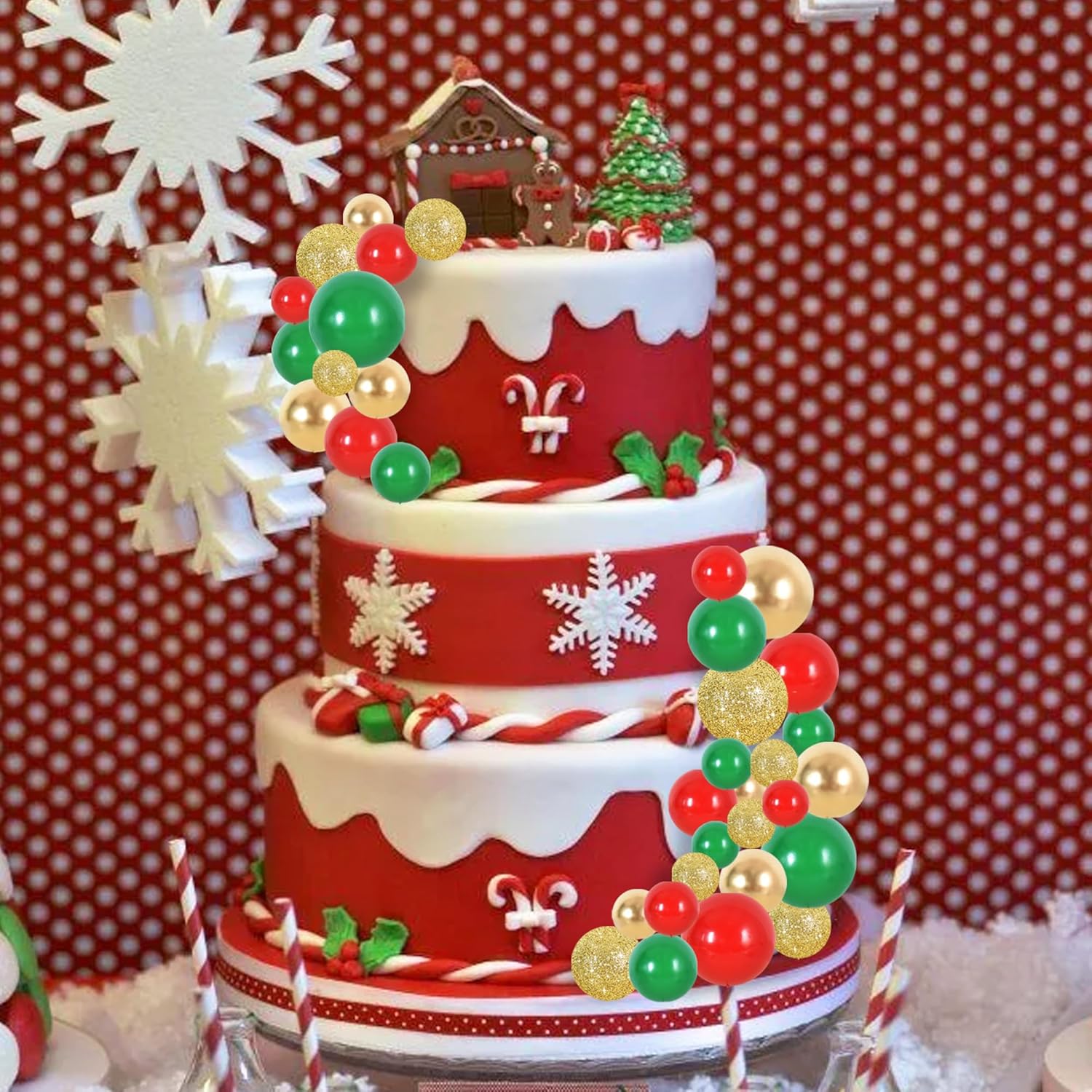 - 【Package include】40 pieces plastic foam balls cake toppers in 4 colors: green, red, gold silver. Size:including 1.18 inch x16, 1.57 inch x12 and 1.96 inch x12.