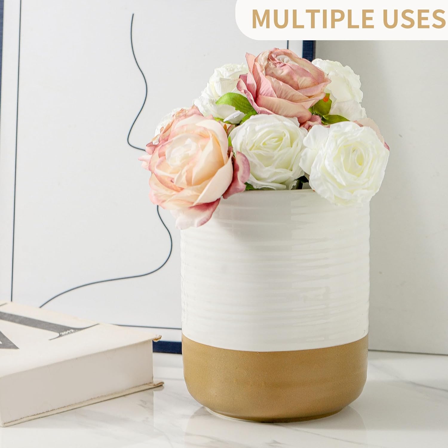 - Elegant White Utensil Organizer for Countertops: The sleek white color-block design with ribbed details enhances your kitchen decor, making this utensil organizer a stylish yet functional addition to modern or traditional settings