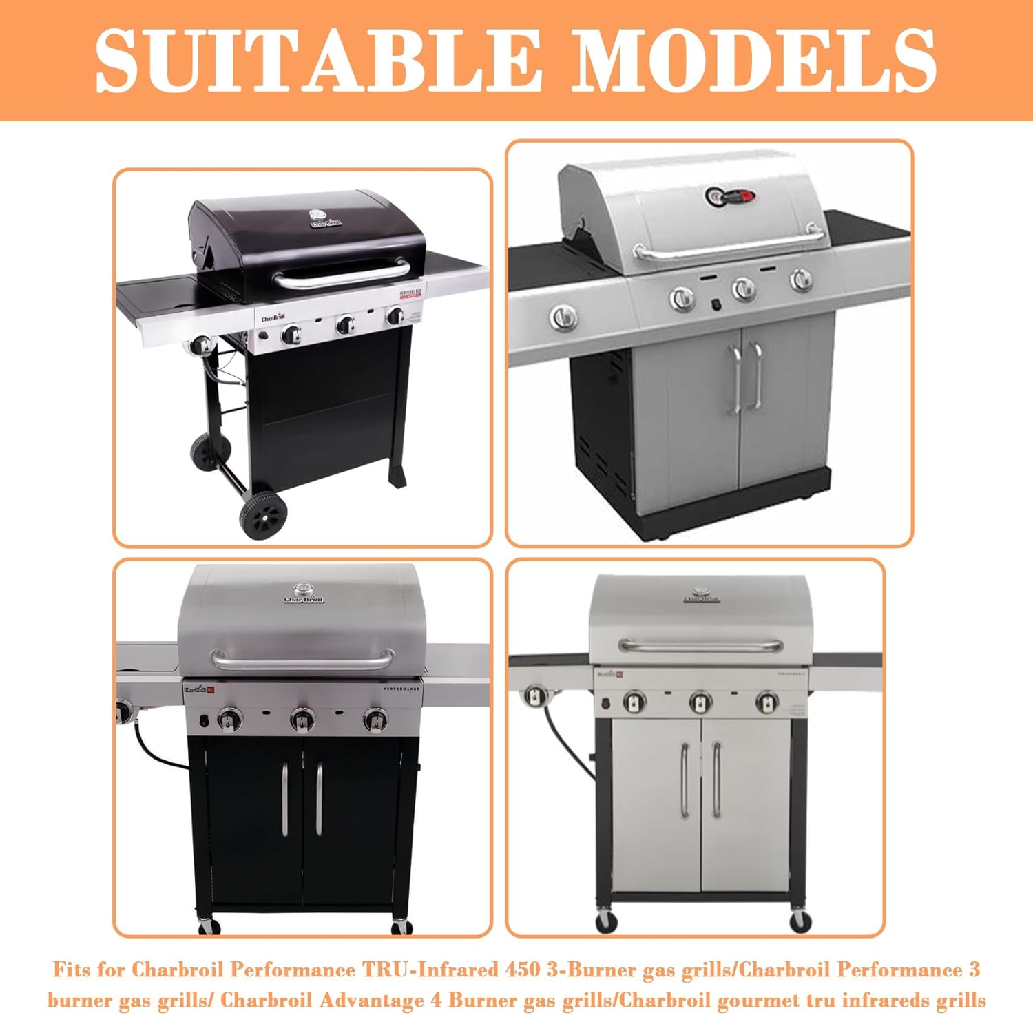 - Griddle Inserts Compatible with Charbroil performance 3 burner 463344015 463336016 463370917 463343015 463274019 463672416 463470109 463344015 gas grills. Grill replacement parts for Charbroil Advantage 4 Burner 463247005 463350108 463320107 463320108 463334715 463343819 463370108 463321707 463320308 463344116 463334615 466250509 466250511 463250509 463247004 466343015 463250511 463320707 463360408 463334714 463250510 gas grills.