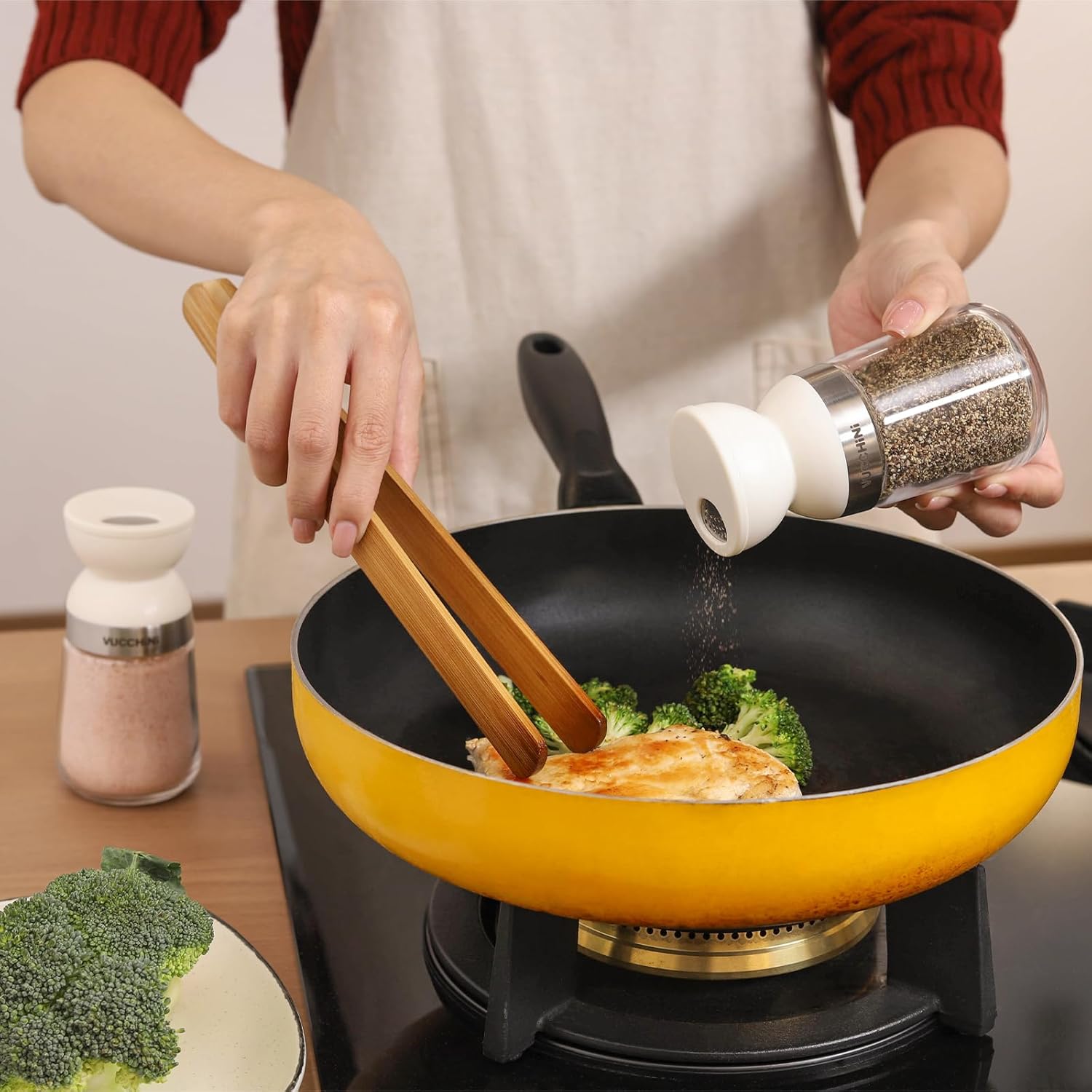 - Ergonomic Double Sphere Design - The VUCCHINI kitchen spice shaker set features a Double Sphere design for effortless, comfortable pouring. Experience an easy-to-use addition to your kitchen that makes seasoning a friendly pleasure.【SPICE NOT INCLUDED】