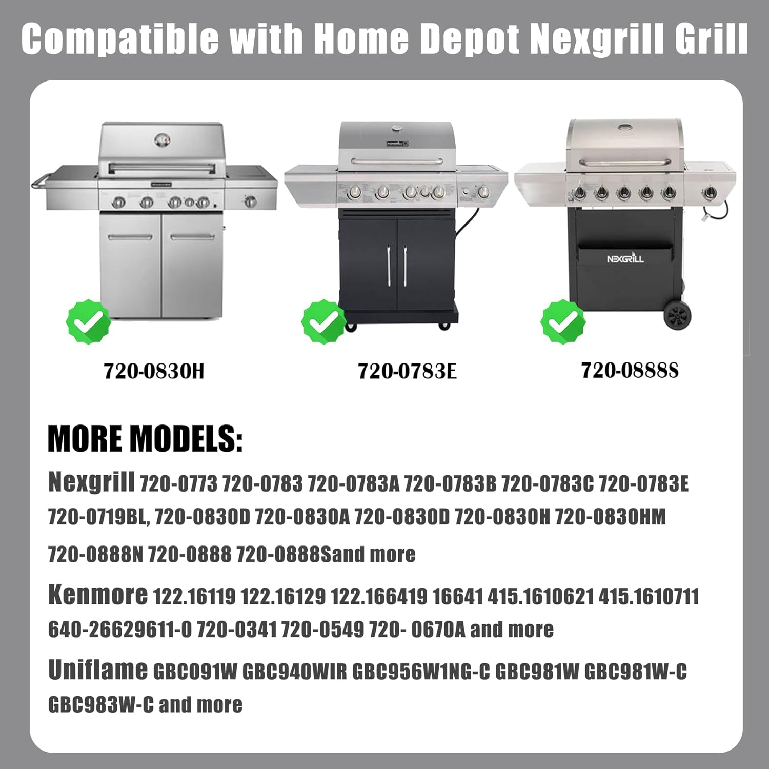- Compatible with Home Depot Nexgrill Grill Replacement Parts: Our full-size griddle insert is designed to fit Nexgrill 720-0830 720-0830H 720-0830D 720-0888 720-0888N 720-0888S 720-0958A 720-0958AE 720-0670A 720-0670C 720-0783 720-0783A 720-0783B 720-0783C 720-0783E. Expert grill 720-0789H.