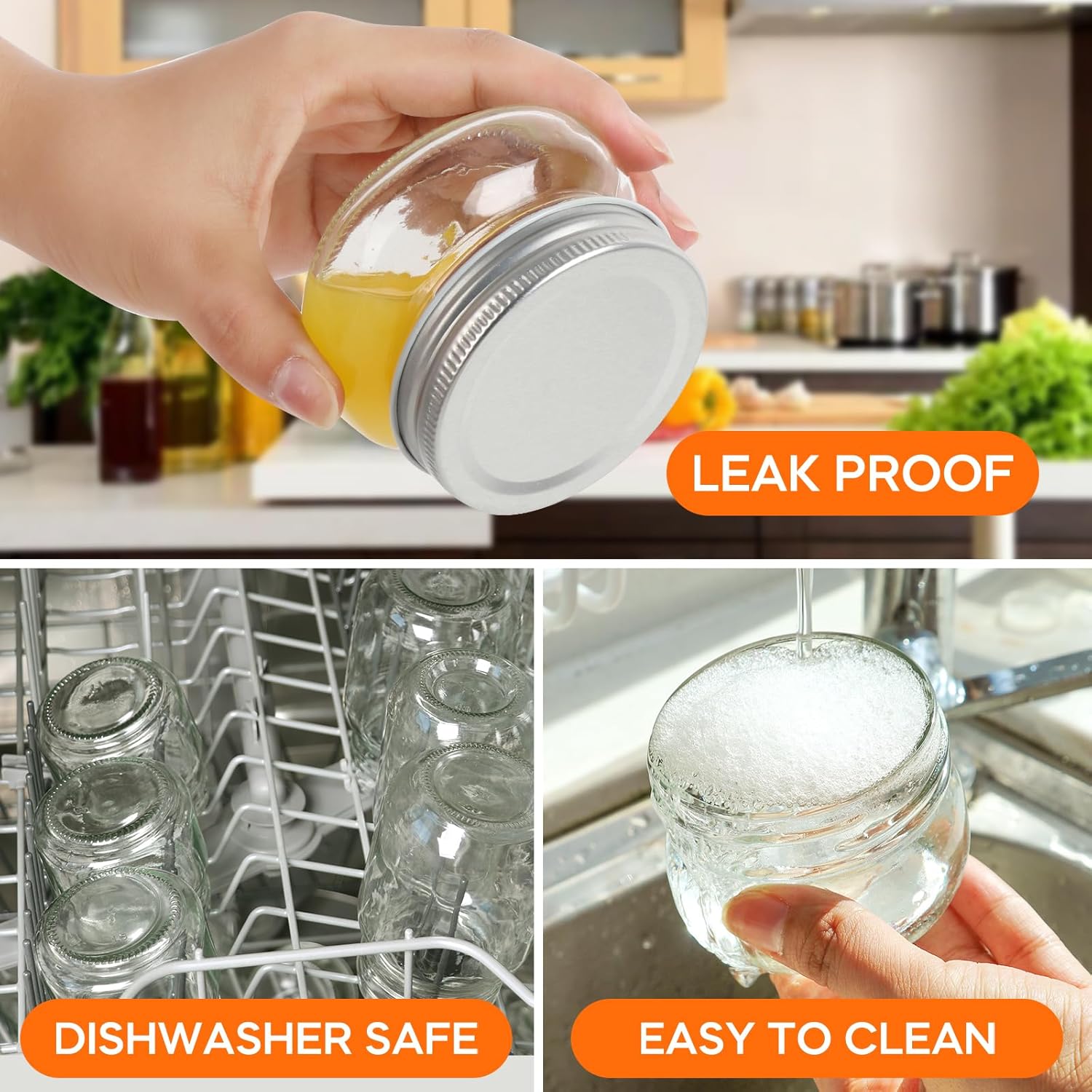 - PREMIUM MATERIAL & DURABILITY:Crafted from thick, high-quality glass , 4oz Mason Jars reinforced for long-lasting use and lead-free, making it safe for storing food items. They are safe for microwave heating and dishwasher cleaning (without the lid), ensuring convenience in daily use