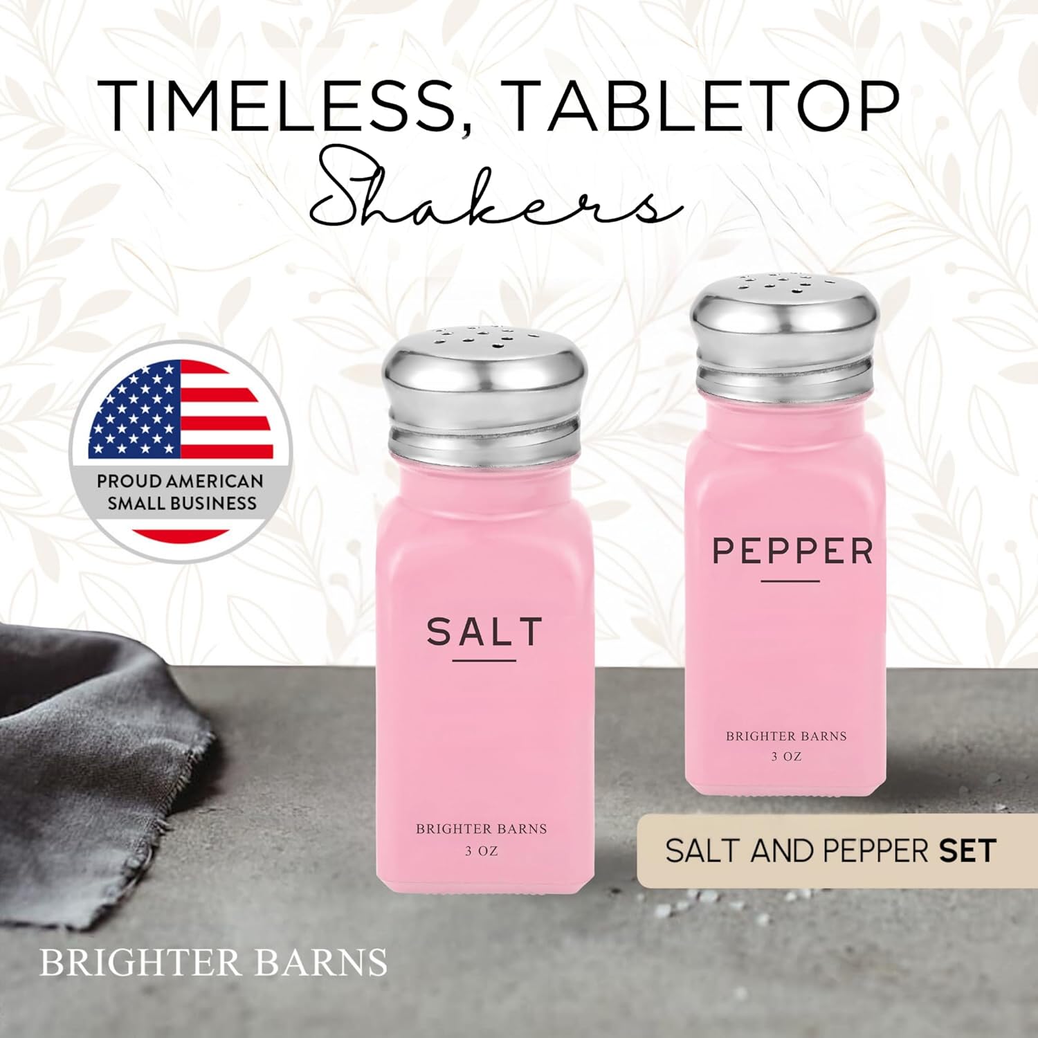Pink Salt and Pepper Shakers Set by Brighter Barns - Modern Kitchen Accessories - Cute Salt and Pepper Set with Stainless Steel Lids - Chic Decor and Kitchen Essentials for Restaurants, Airbnb (Pink)