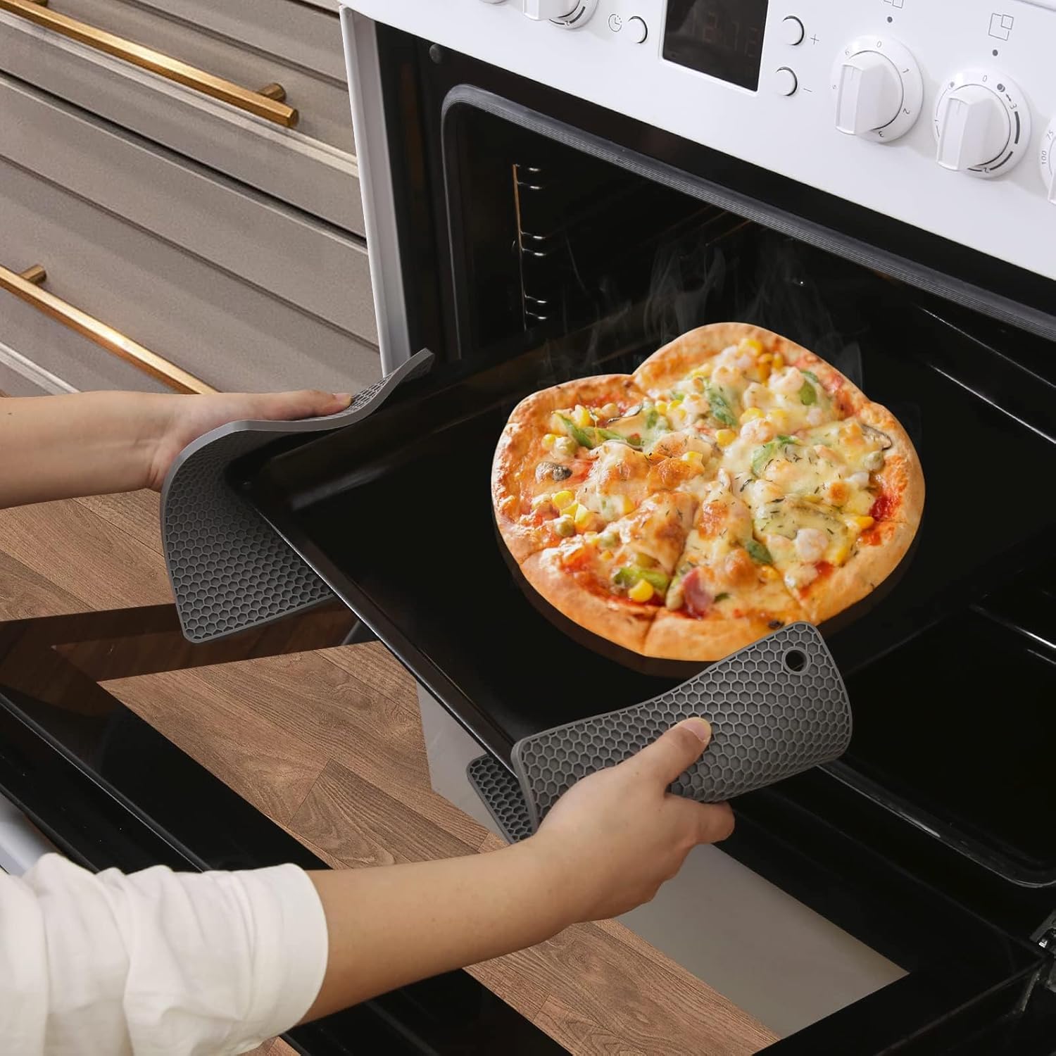- FLEXIBLE & DURABLE TRIVETS - Our silicone trivet mats for kitchen counter are thicker than traditional sets to provide long-lasting durability and better protection for your countertops while maintaining their flexibility. The honeycomb pattern makes them more heat-resistant.