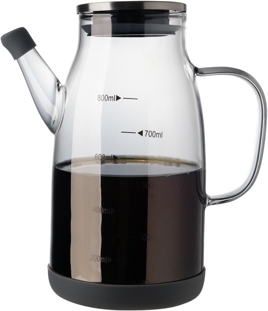 - 【Perfect design】Our olive oil dispenser, with a stainless steel lid. The oil jug has a milliliter scale that allows you to control the amount of olive oil or vinegar you use while cooking. We also have a silica cap that keeps out the dust, and a silica base that prevents collisions. let you use it in the kitchen, safe rest assured.