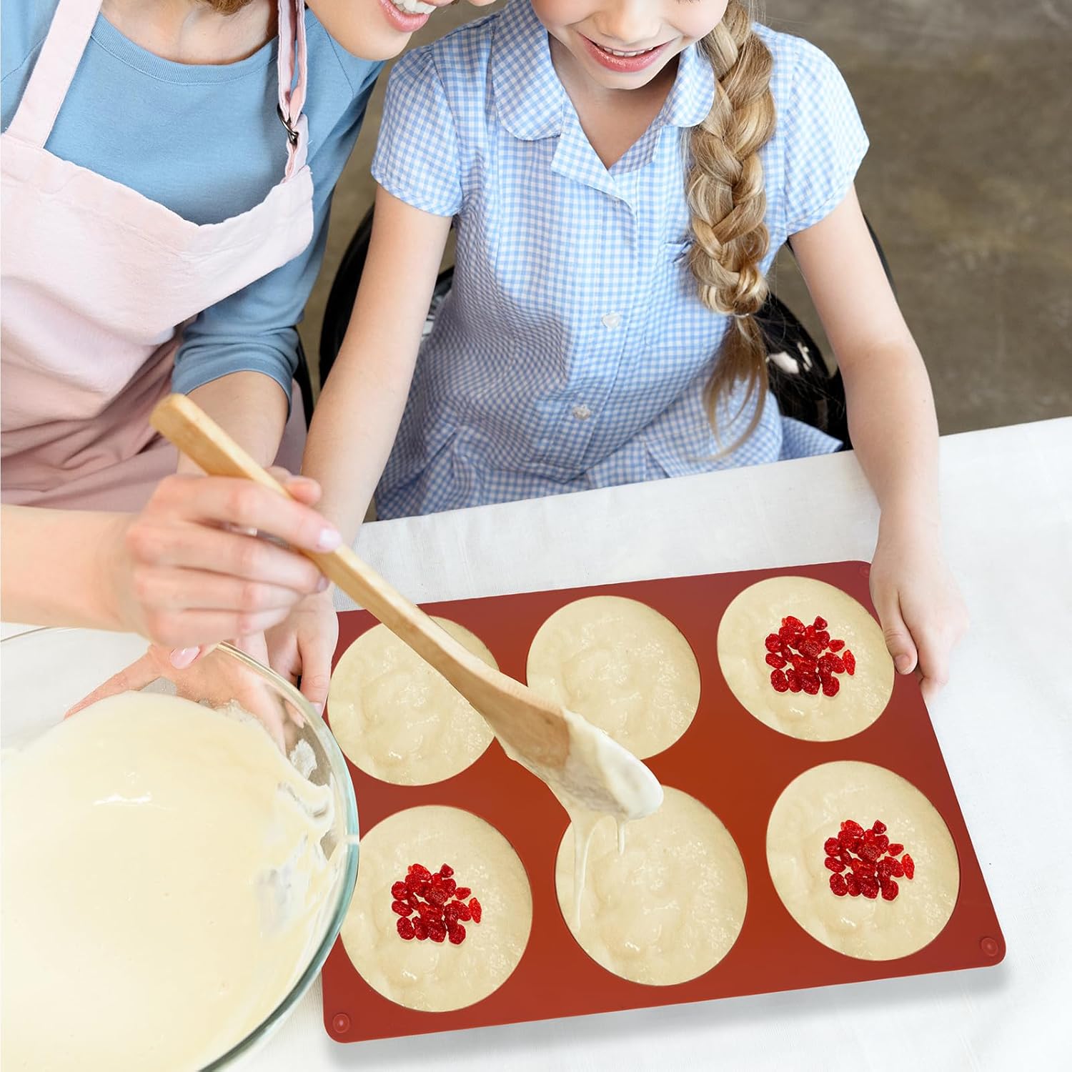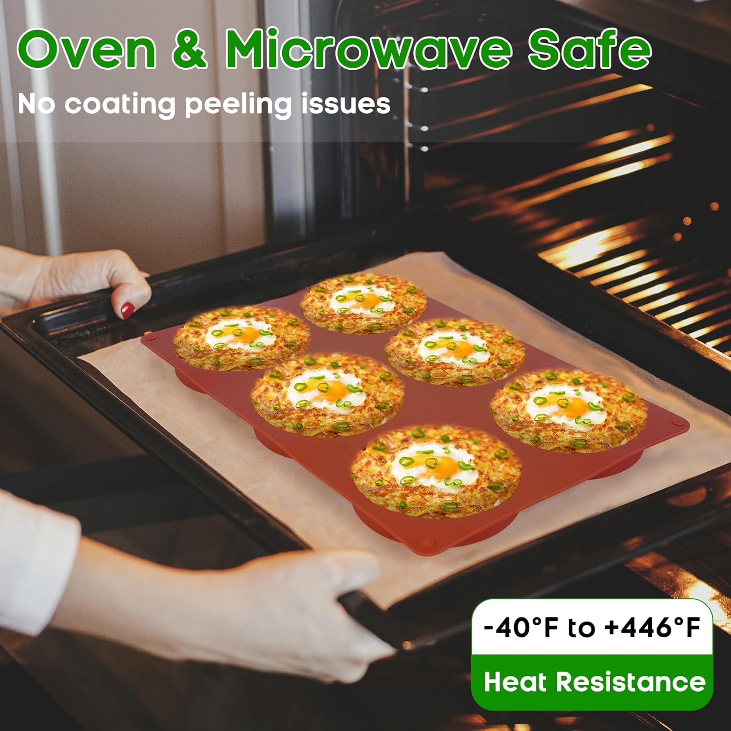 - 【Using Tips】 Due to the softness and flexibility of the silicone Muffin Top Pan, we suggest to put a hard baking tray or sheet under these molds before filling them for easy move it