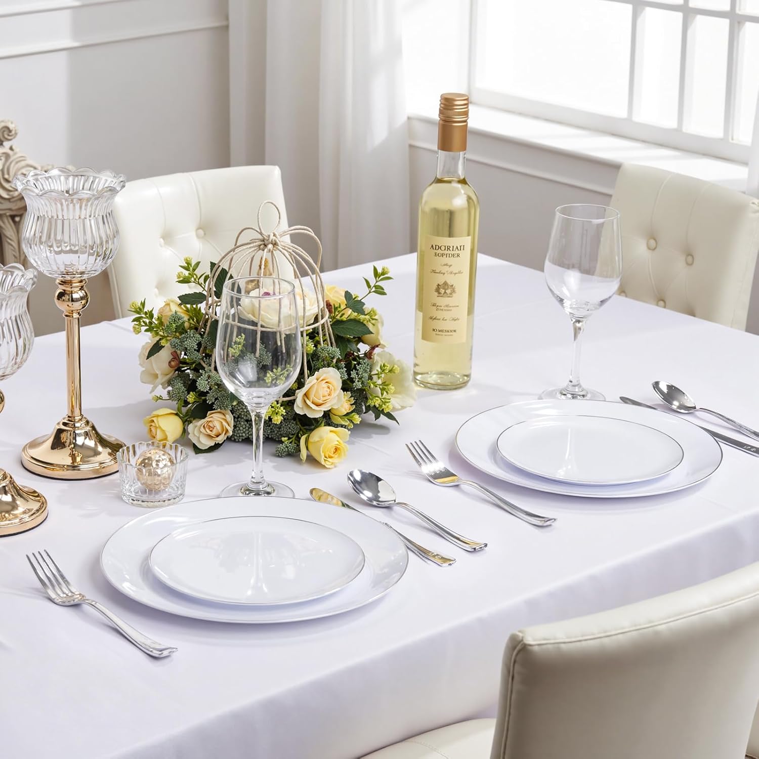 - White with Silver Rim – these white and silver plates looks are off the charts! Way sturdier and more premium-feeling than paper plates. Made from 100% food-grade material, BPA-free – you can serve anything with total peace of mind! These silver plastic plates instantly elevate your table's vibe, and look amazing in photos too.