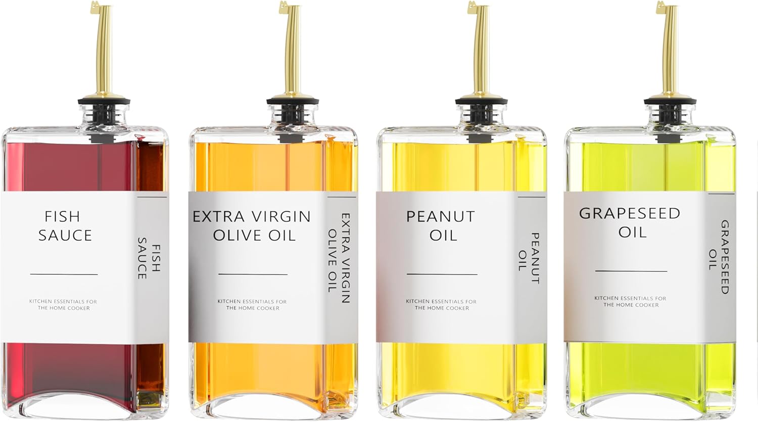 Kitchen Cooking Oil Dispenser Set, Olive Oil & Vinegar Bottles, Soy Sauce Dispenser - 4 Pieces, Gold, Elegant Book Design, Durable, Leak-Proof, Easy-Pour Spouts, Perfect for Kitchen, Dining Table