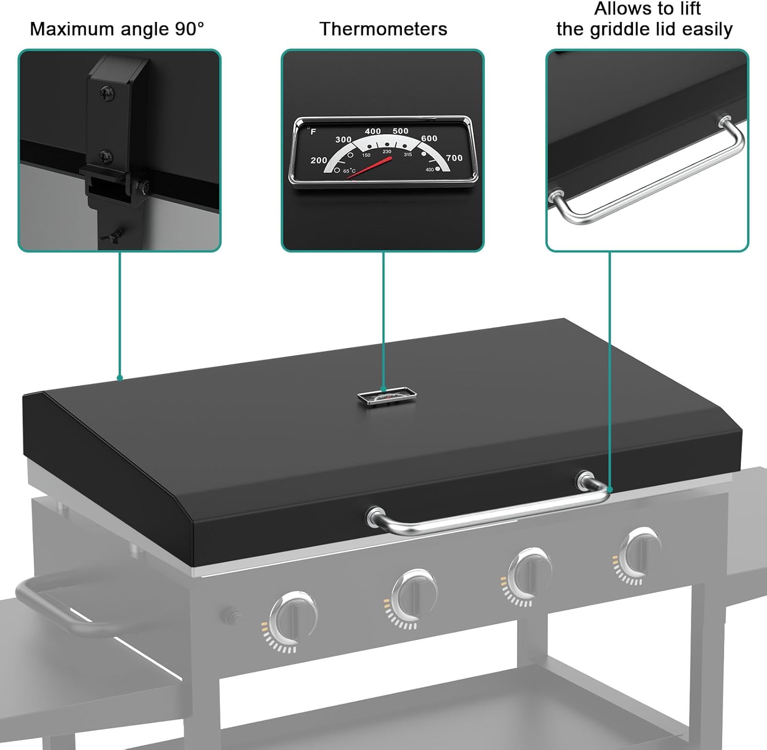 Upgraded Griddle Hinged Lid for 36" Blackstone 1554 1863 1825 1818 1565 1560 2149 1841 1866 2122 2151 2177, Hard Cover with Thermometer and Cover for Blackstone 36 Inch Griddle Accessories