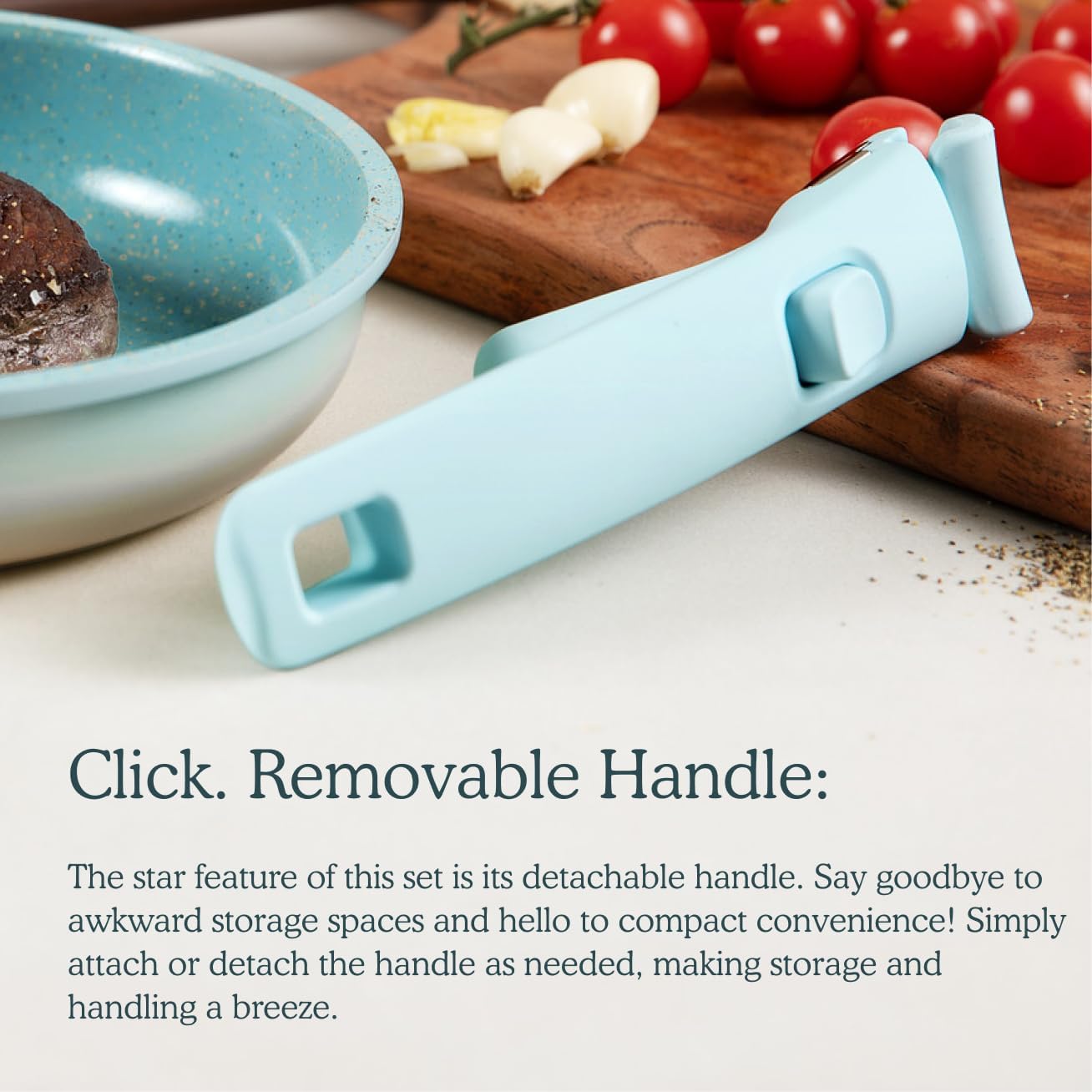 - Removable Handle: The star feature of this set is its detachable handle. Say goodbye to awkward storage spaces and hello to compact convenience! Simply attach or detach the handle as needed, making storage and handling a breeze.