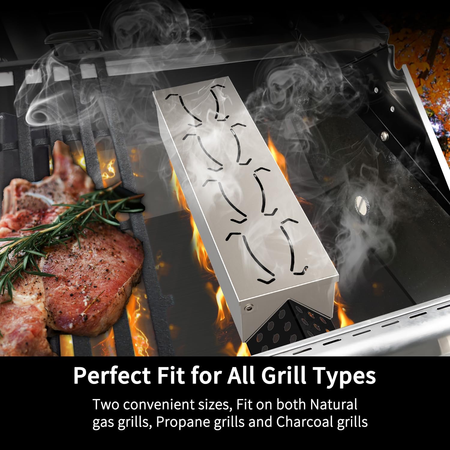 - Exceptional Value with Two Sizes: Get two smoke boxes for the price of one! The set includes a large (12 x 3.3 x 2.5 inches) and a small (11.25 x 3.1 x 2 inches) smoker box for gas grilling, giving you flexible options for all your grilling needs. Perfectly suited for gas, propane, and charcoal grills