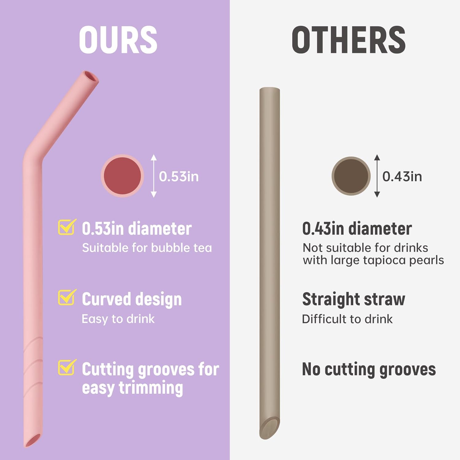 - Perfect for Thick Drinks: No more hassle when enjoying your favorite thick beverages! Our reusable silicone straws are specifically designed for thick drinks like smoothies and boba tea. Whether it's a creamy milkshake or chunky bubble tea, these straws make sipping effortless.