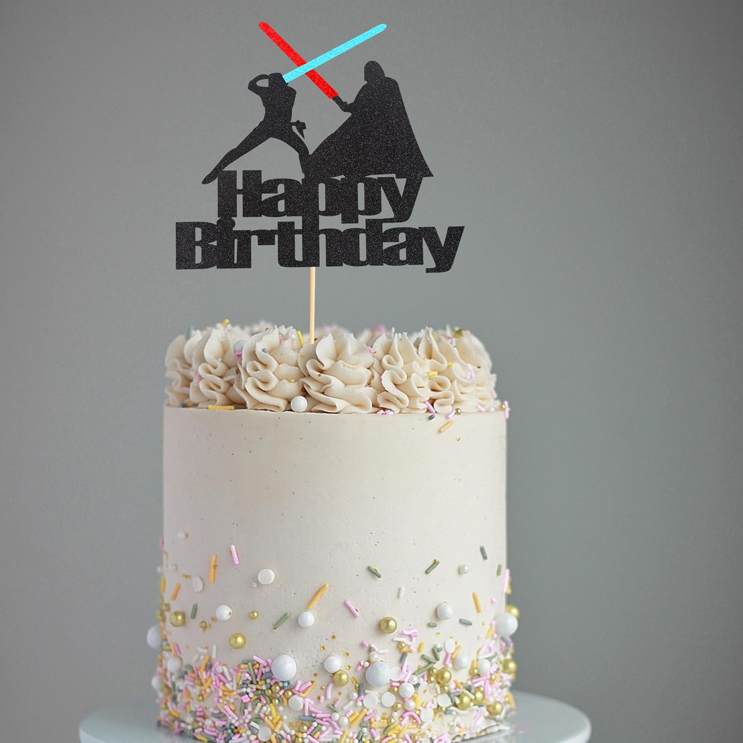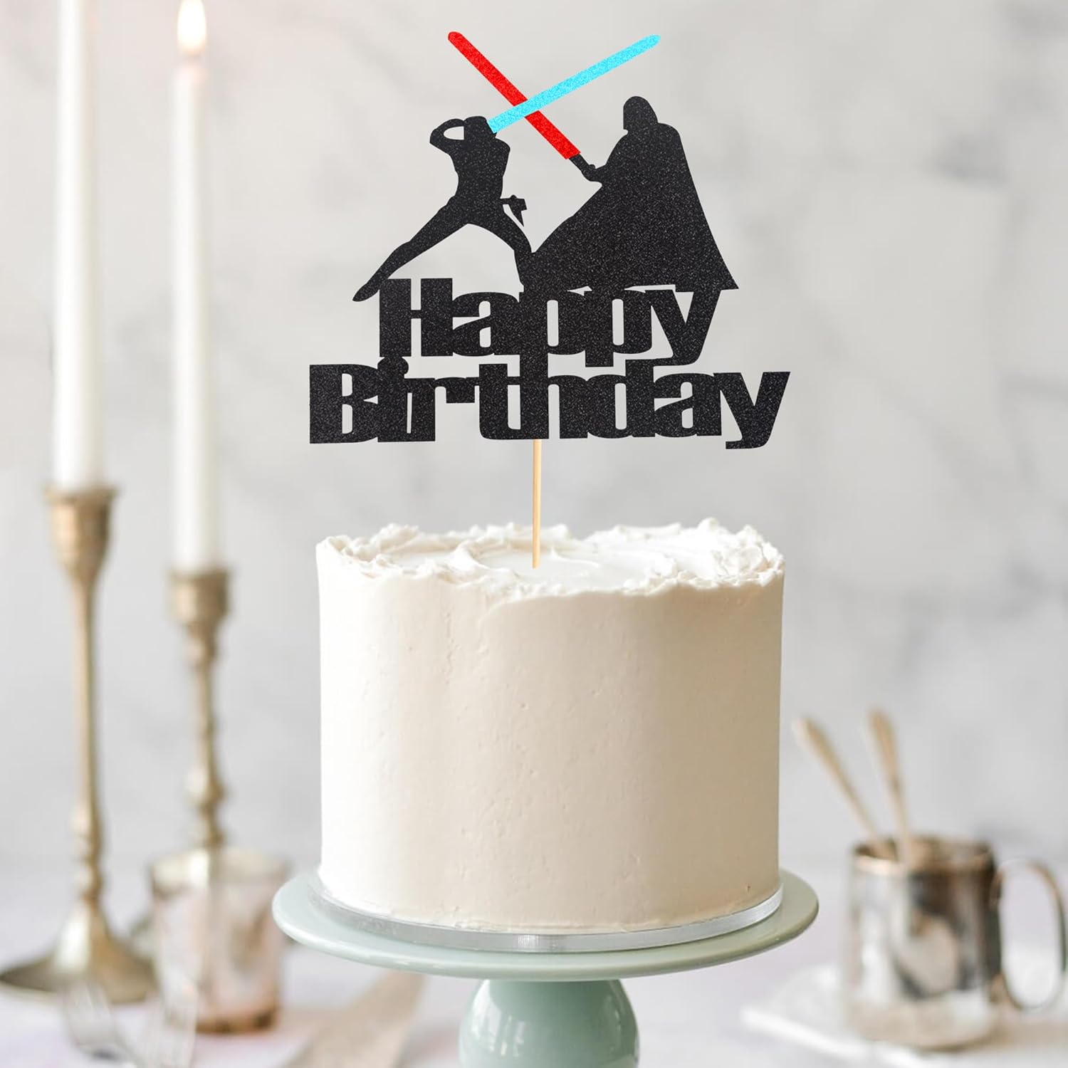 Arthsdite 1Pc Darth Vader Happy Birthday Cake Topper Alien War Cake Pick - Children's Birthday Baby Shower Party Supplies Decorations For Boys