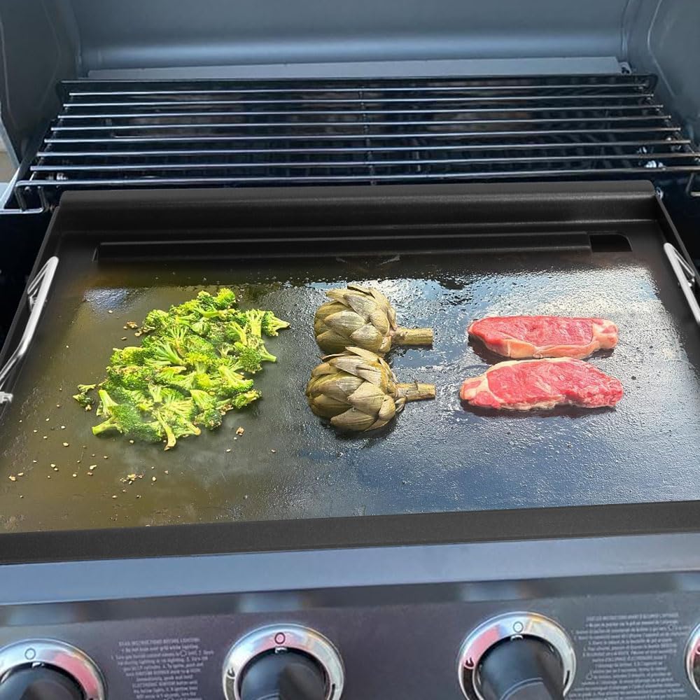 - 【Features】The inserts griddle is closer to the fire source and heats up more easily than other griddles placed on the grates to achieve the temperature needed to cook delicious food. Before use, please remove the grate & emitter plates to achieve closer to the heat source. The surface of the baking pan is made of coating, durable and easy to clean, need to be heated and oiled 1-2 times before use for better results.