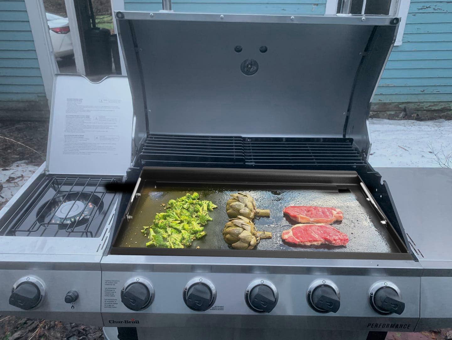 - 【Perfect for Charbroil Performance 5 Burner Series Grills】Flat Top Grill Griddle compatible with charbroil Grills model 463450022 463451022 463455021 463448021 463456022 463449021, 463458021, 463459021 Grills.【Note】Because the Performance Series grills are manufactured in different years, the dimensions vary, so please check whether the front and back of the grill is 17 inches or 18 inches in length before purchasing.
