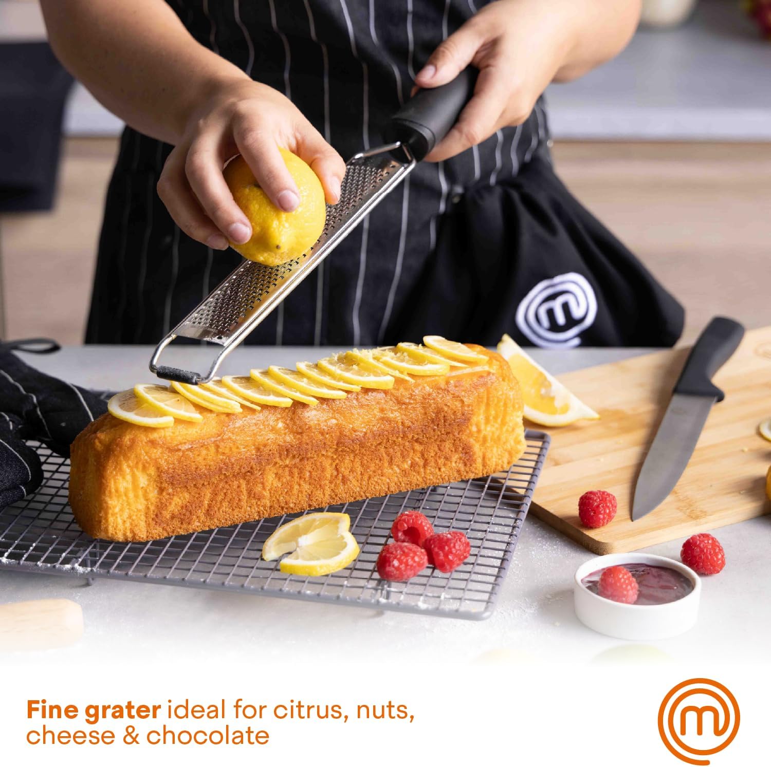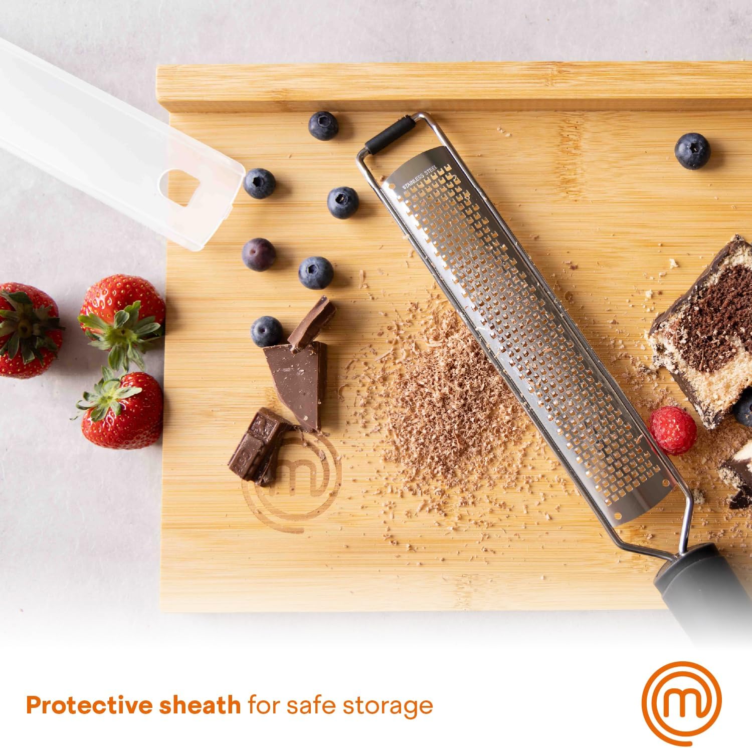 MasterChef Zester Grater with Handle, Kitchen Tool for Zesting Citrus Fruits & Finely Grating Parmesan Cheese, Garlic, Ginger, Coconut, Nutmeg, Wasabi, Chocolate etc, Stainless Steel