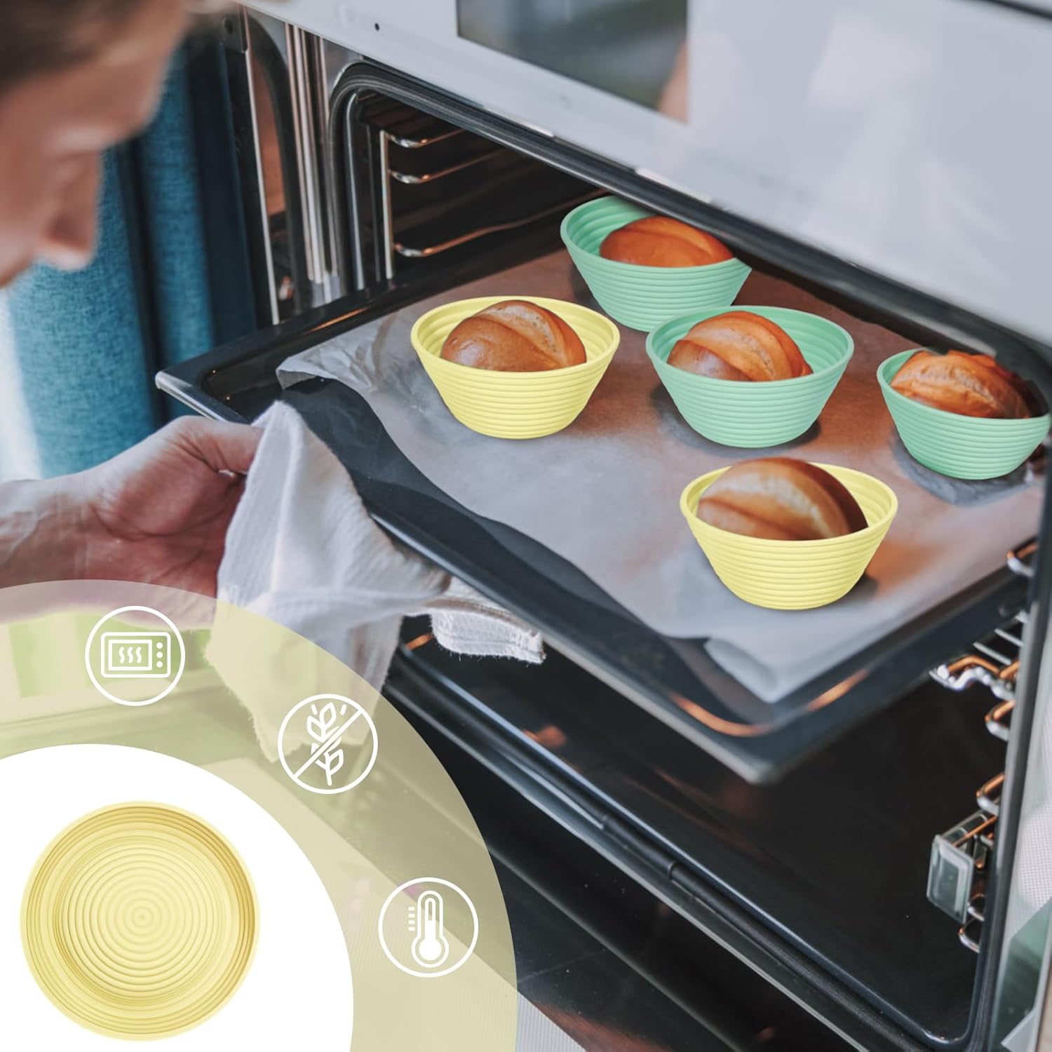 Silicone Banneton, Sourdough Bread Baskets (Set of 6, 5 Inch), Round Proofing Bread Bowls with Starter Kit, Bread Making Baking Supplies