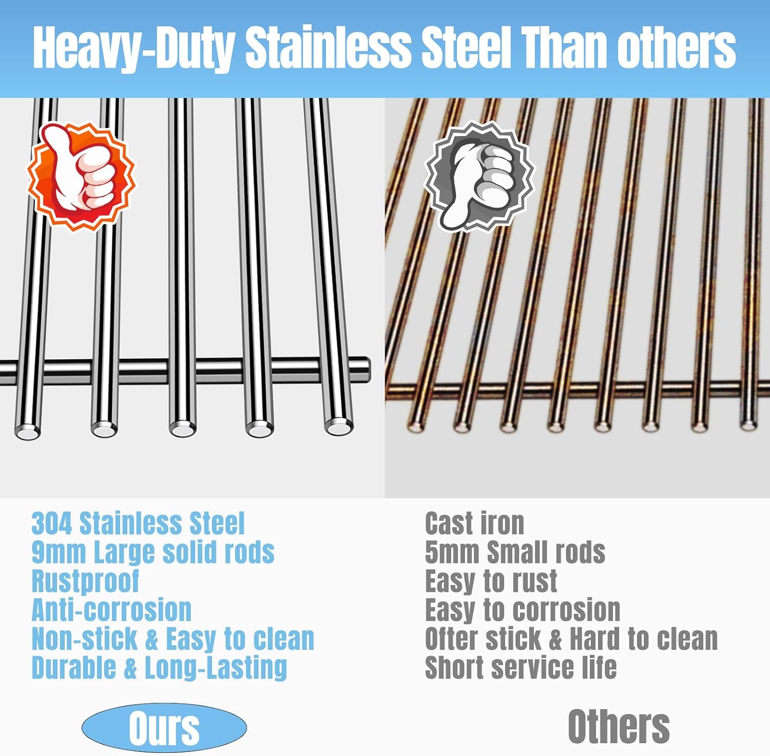 - 【Package】Including 2 pack solid 9MM rods stainless steel cooking grates,dimension: 18 7/8" x 9 15/16" Each, 18 7/8" x 19 7/8" Total. Please kindly compare with the SIZE and MODEL of your original parts before you order