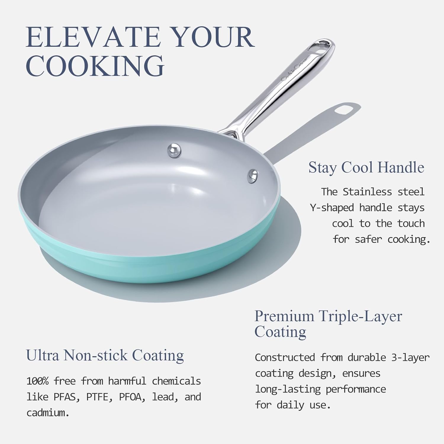 - Material : Ceramic Coated Cast Aluminum with Ergonomic Stainless Steel Handle