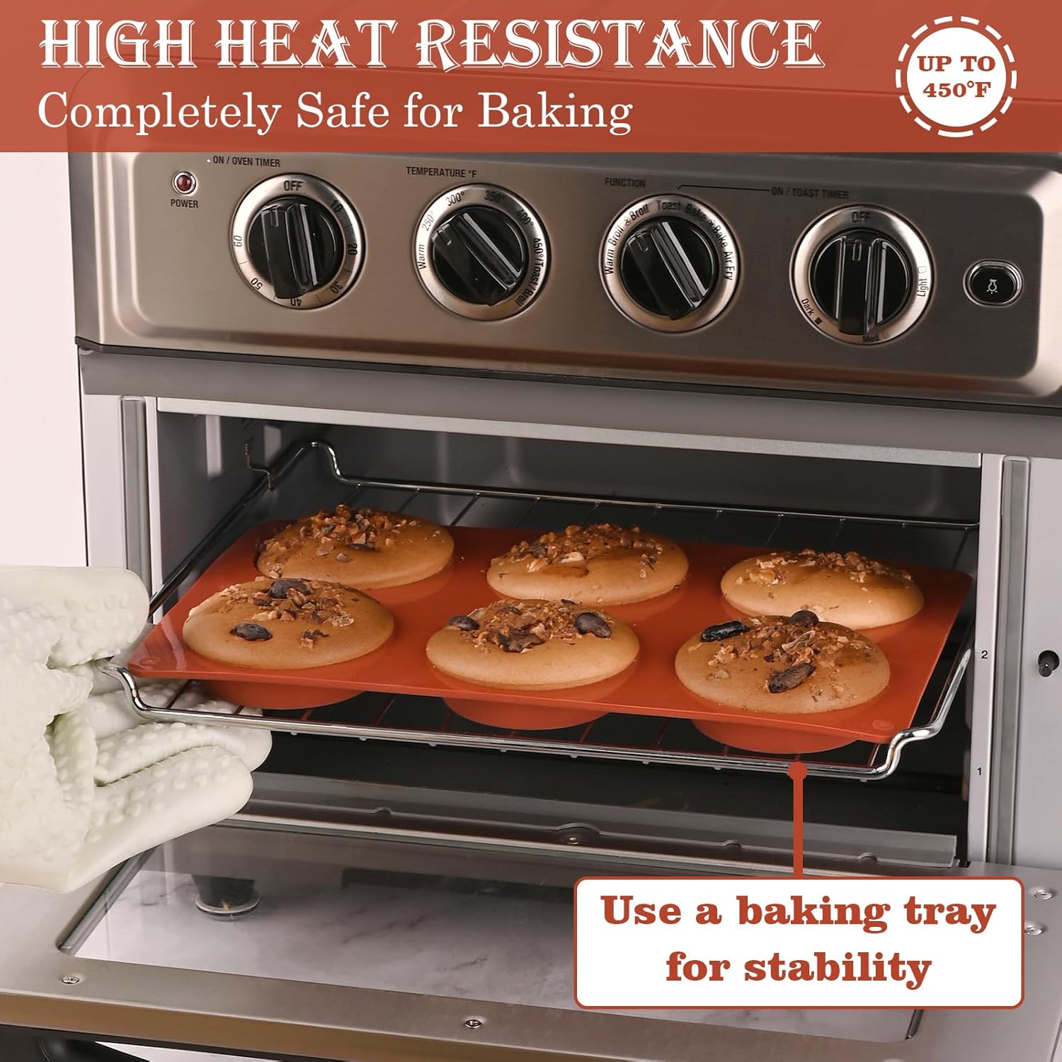 Sakolla 3 Pack Muffin Top Pans, 6 Cavities Silicone Egg Molds for Breakfast Sandwiches, Whoopie Pies, Hamburger Bun, English Muffins, Tarts, Corn Bread (Brick Red)