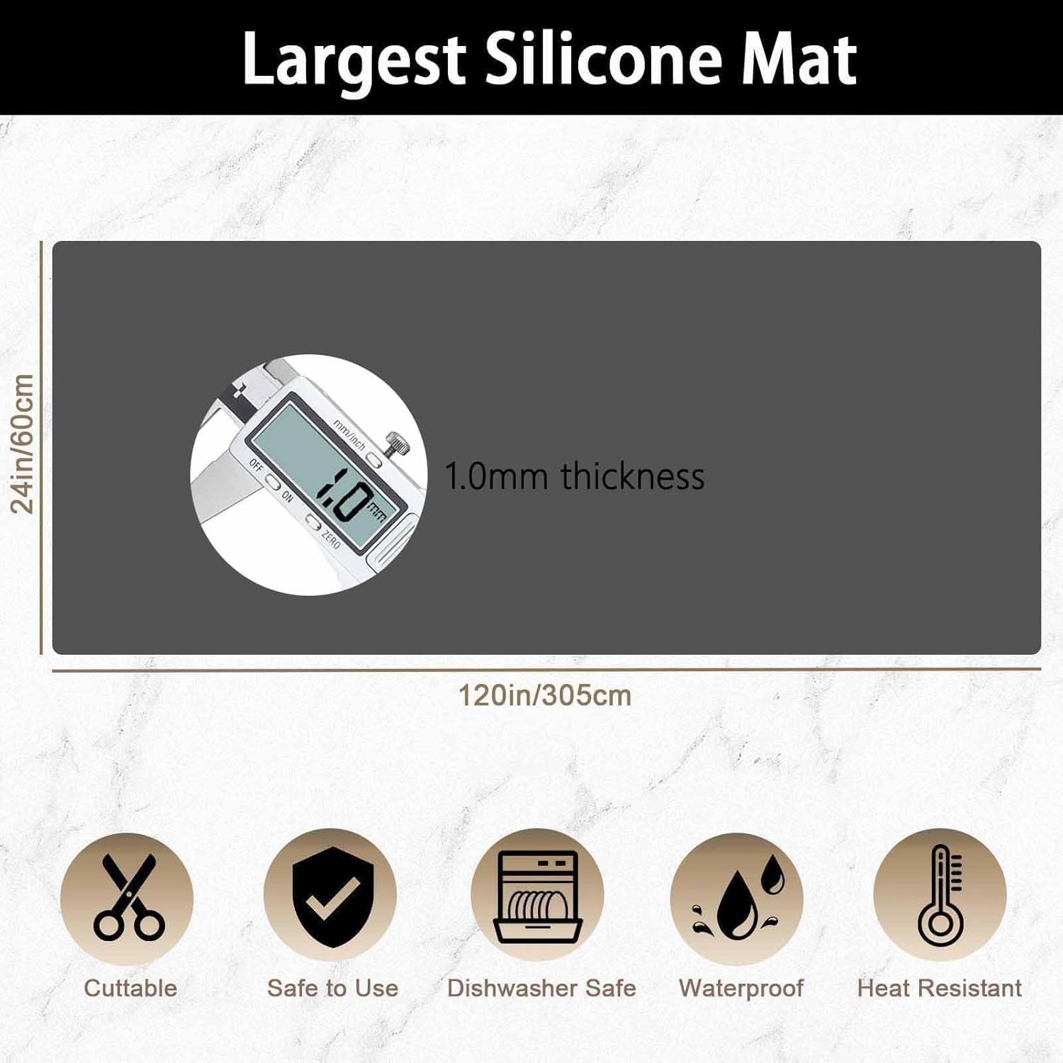 - Extra Large & Thickened: The size of the silicone mat is 120"x24"(305cmx60cm),1.0mm thickness. The thickened design makes it have better protection and not easy to tear up. We roll up the mats for packing to prevent permanent creases when packaged and shipped, and you will no longer suffer from mat creases.