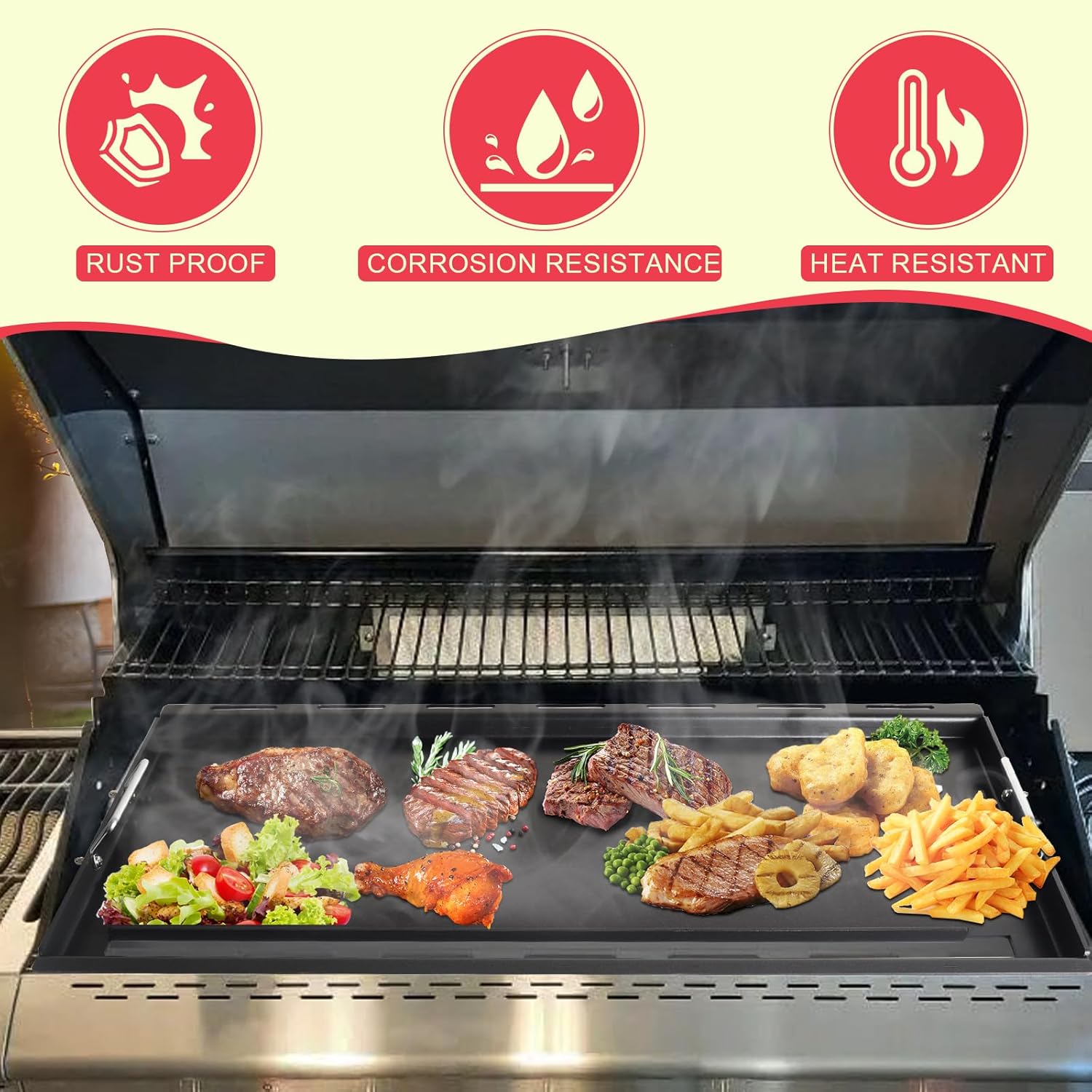 - Versatile BBQ Game-Changer: Bored of basic grilling? Turn your grill into a diner-style flat-top! Sear steaks, cook breakfast spreads, or fry crispy bacon—all on one surface. Unlike small griddle pans, this full-size insert gives you room to cook for crowds. Perfect for tailgates, backyard parties, or weeknight dinners. Love smoky flavors? Keep your grill grates for charring and swap in this griddle for endless cooking options!