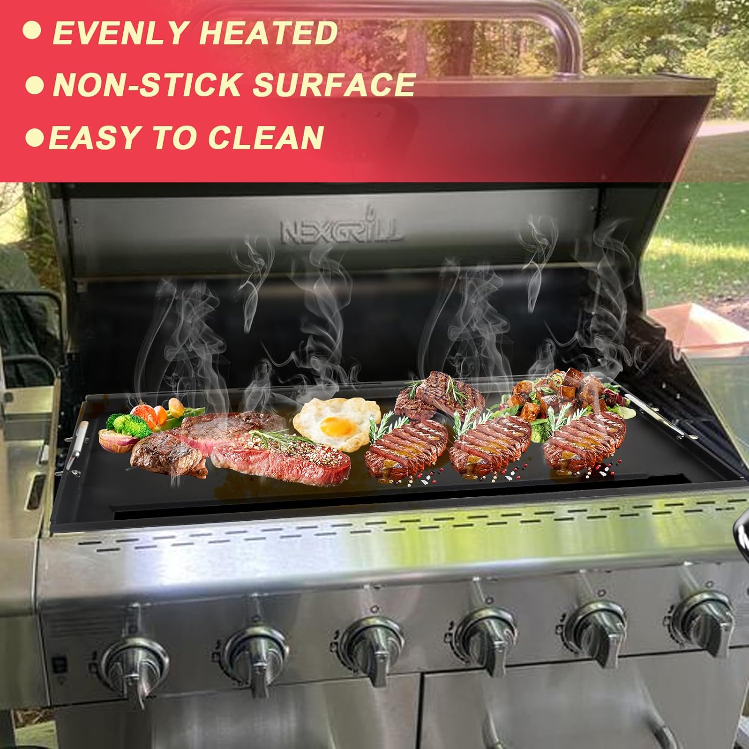 - Safe, Secure & Easy to Handle: Integrated side handles let you lift and reposition the plate safely, even with oven mitts. The snug fit prevents wobbling during cooking, and the raised edges keep grease from dripping into your grill. Upgrade flat griddle top plate for nexgrill homedepot 6 burner gas grill with a griddle that stays put—no more juggling grill griddle.