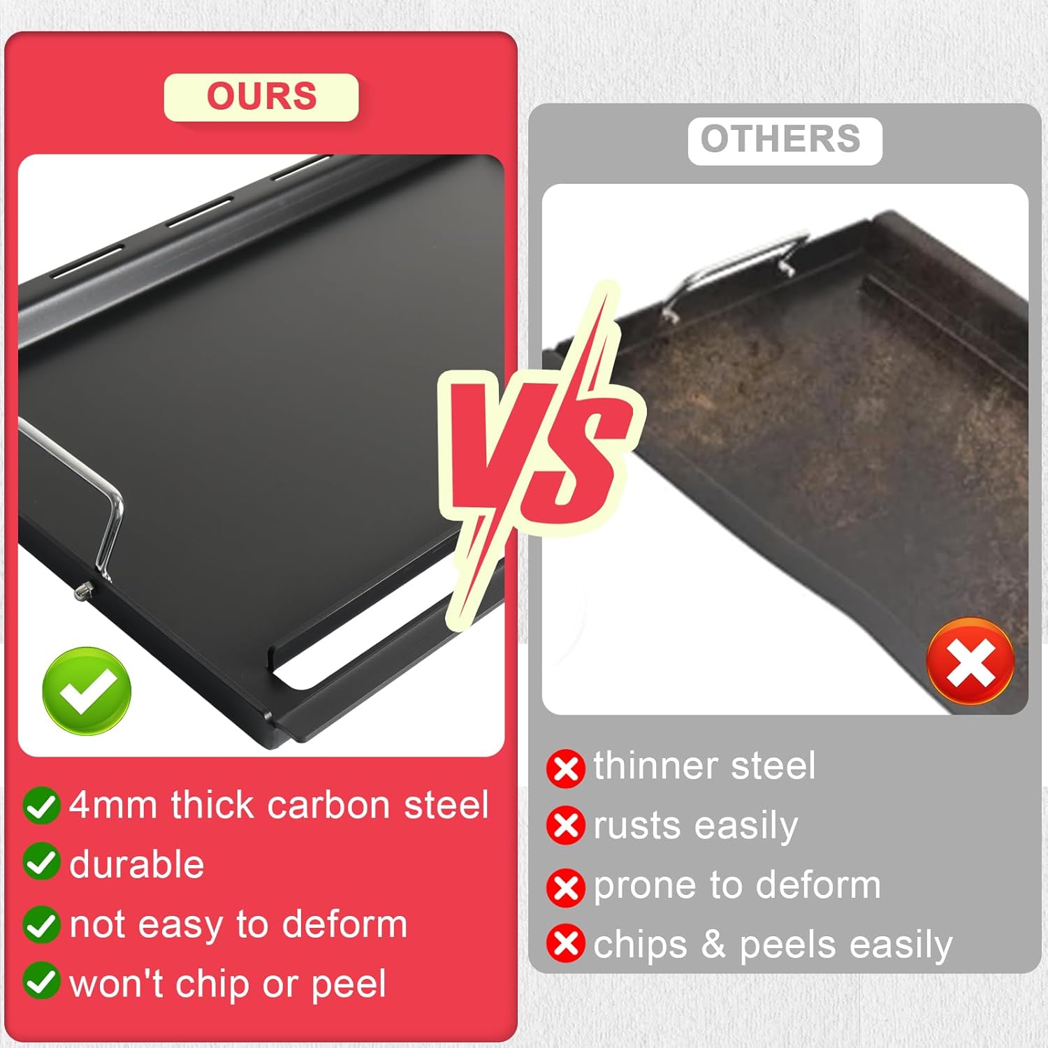 - Built to Last & Cook Like a Pro: Why settle for warped, uneven griddles? Crafted from premium 4mm carbon steel, this heavy-duty plate distributes heat evenly and handles high-heat searing, pancakes, or veggies without warping. Its rugged design resists rust and scratches, unlike thin competitors. Whether you're flipping burgers or stir-frying, this flat griddle top plate for weber genesis 300 griddle outperforms Cast iron with faster preheating