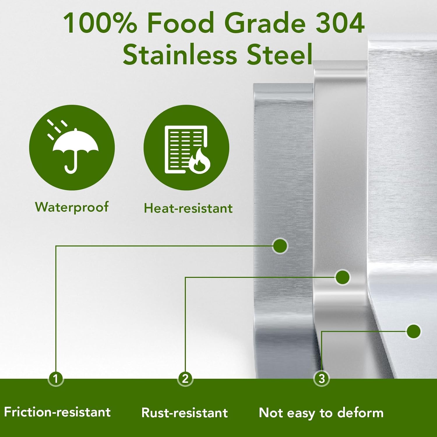 - Food Grade 304 Stainless Steel Material: The outdoor bbq grill table is made of 100% 304 thickened stainless steel. It can support up to 300 pounds, not easy to deform, waterproof and heat-resistant. It can be used both indoors and outdoors.