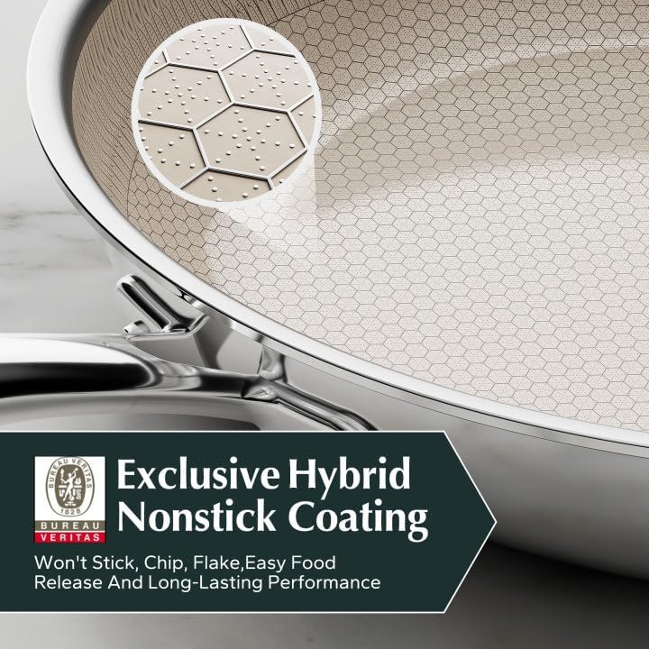 - Hybrid Honeycomb Structure: This innovative hybrid honeycomb structure offers superior non-stick properties, ensuring the ceramic coating remains intact and does not peel off, while effortlessly preserving the natural characteristics of food