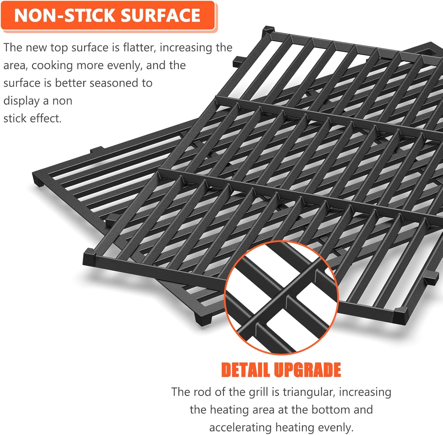 - 🔥【Robust Build For Long Use】Weighing 15.17 pounds, our cast iron grates are significantly heavier than the original, which only weigh 10.26 pounds. Constructed from durable cast iron, these Weber Genesis grill grates are guaranteed to provide long-lasting use. Unlike porcelain enameled rod bars that may chip or rust over time, our Weber Genesis 300 grill grates are built to withstand the test of frequent grilling, making them a perfect addition to your Weber Genesis grill parts collection