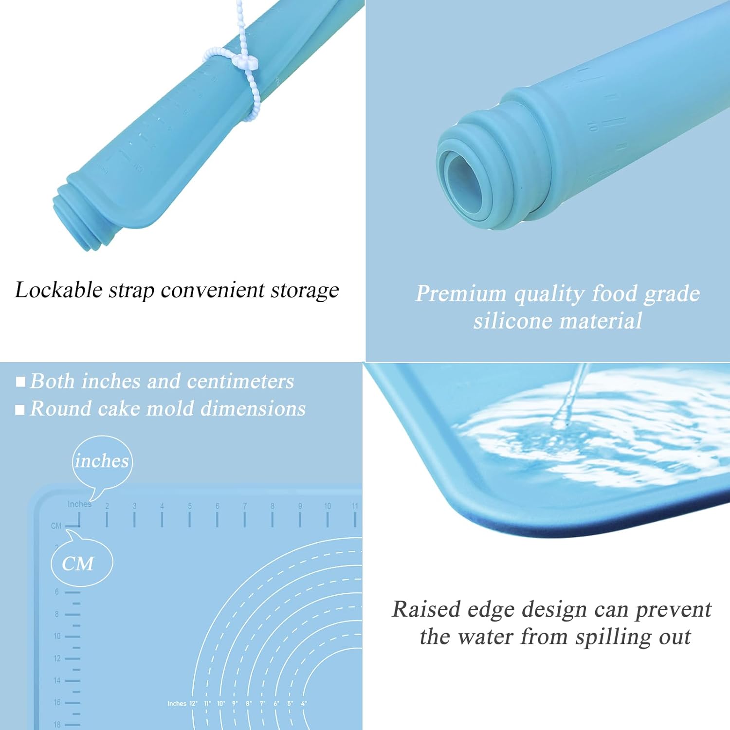- Food Grade Silicone Baking Mat: The silicone pastry mat is made from high-quality food grade soft platinum silicone. The thickness of the silicone rolling mat is 1.5mm and the edge height is 4 mm. It is safe, soft, durable, won't tarnish or discolor and . To ensure that the pastries are non-toxic and tasteless during the production process