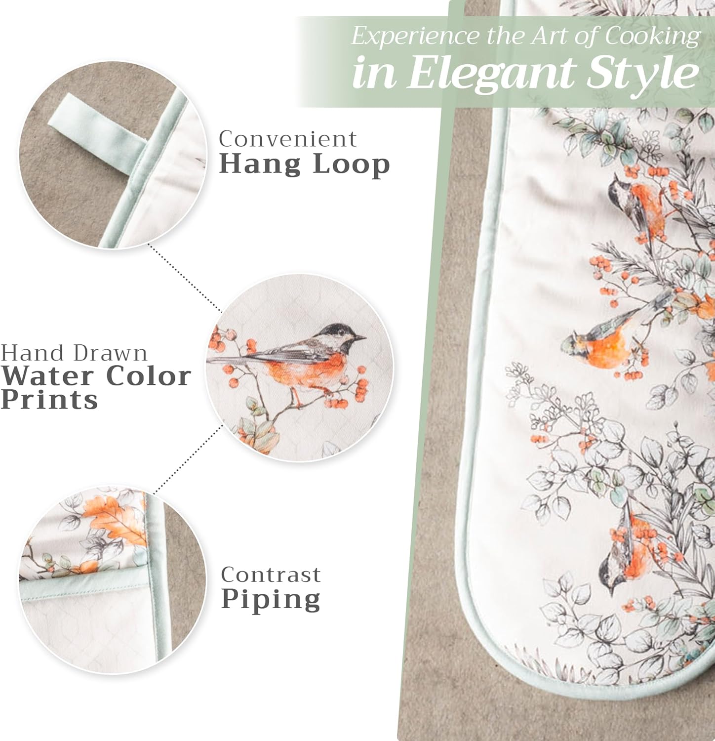 Maison d' Hermine Double Oven Mitt 100% Cotton Heat Resistant Cooking Gloves with Loop, Baking Barbeque, Handling Hot Pan, Whitish Shabby Chique - Thanksgiving/Christmas (7 Inch x 35 Inch)