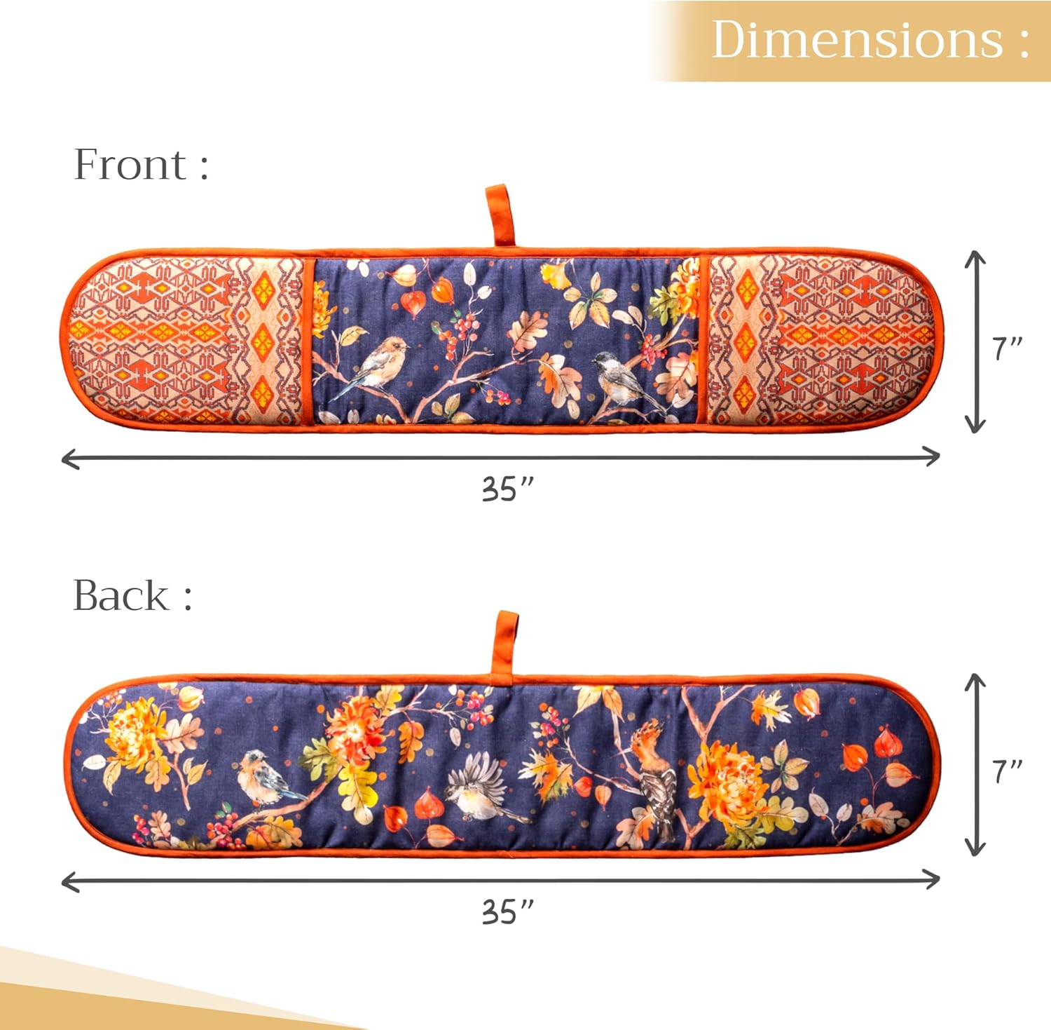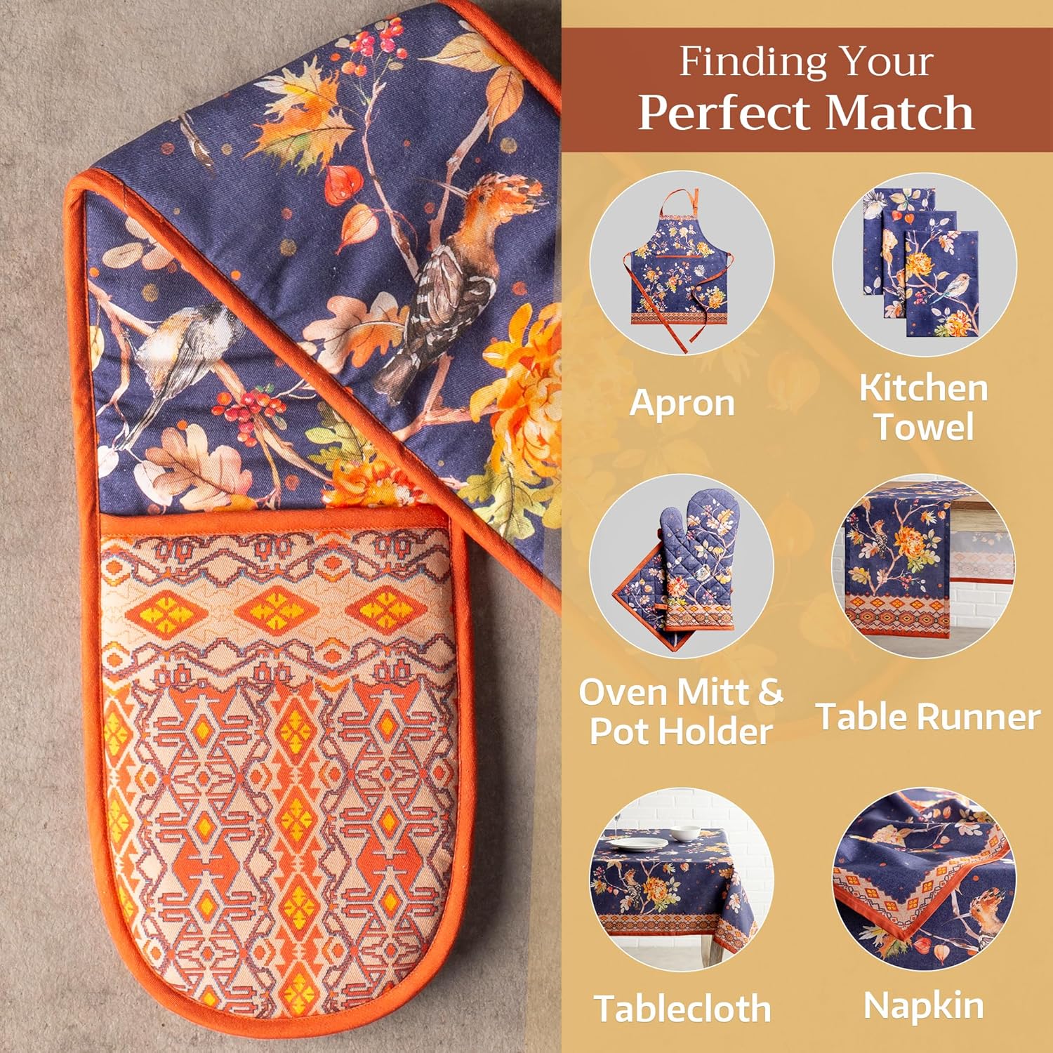 Maison d' Hermine Double Oven Mitt 100% Cotton Heat Resistant Cooking Gloves with Loop, Baking Barbeque, Handling Hot Pan, Kelim - Infinity - Thanksgiving/Christmas (7 Inch x 35 Inch)