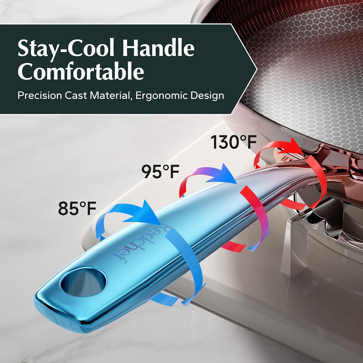 - SUPER NONSTICK: Redchef frying pans nonstick combines a honeycomb structure with a healthy ceramic coating for dual nonstick performance. Effortless food release and easy cleanup make cooking enjoyable. Perfect for frying eggs or sautéing vegetables with minimal oil