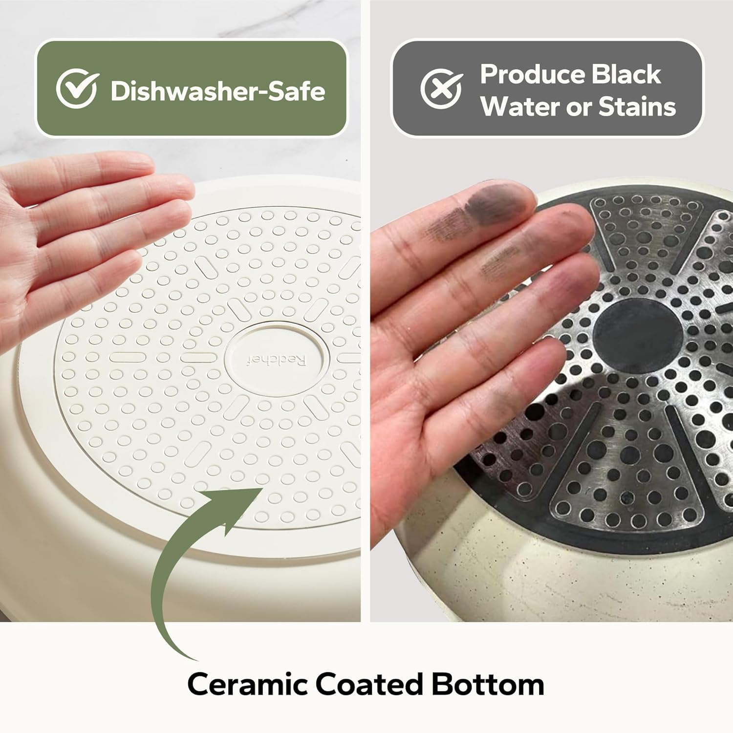 - Non-Toxic Ceramic Coating: Redchef's PTFE/PFOA/PFAS-free ceramic coating ensures healthy, worry-free cooking. Eggs and steaks glide off effortlessly, while the healthy design prioritizes daily meal safety—combining the scratch-resistant durability of ceramic frying pans with the trusted smoothness of premium nonstick frying pans