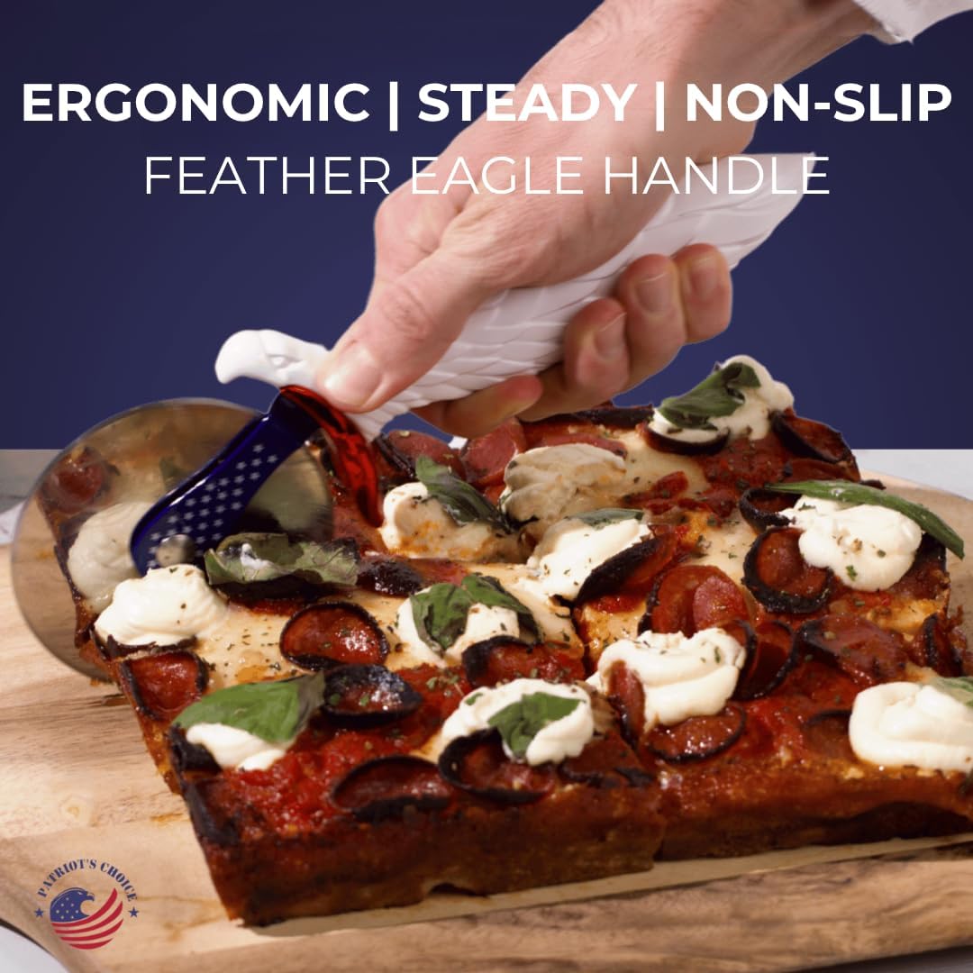 - CRAFTED WITH AMERICAN PRIDE - Combining utility and iconic design for the ultimate pizza experience. Unlike standard pizza tools, the American Eagle Pizza Cutter offers both superior function and patriotic style.
