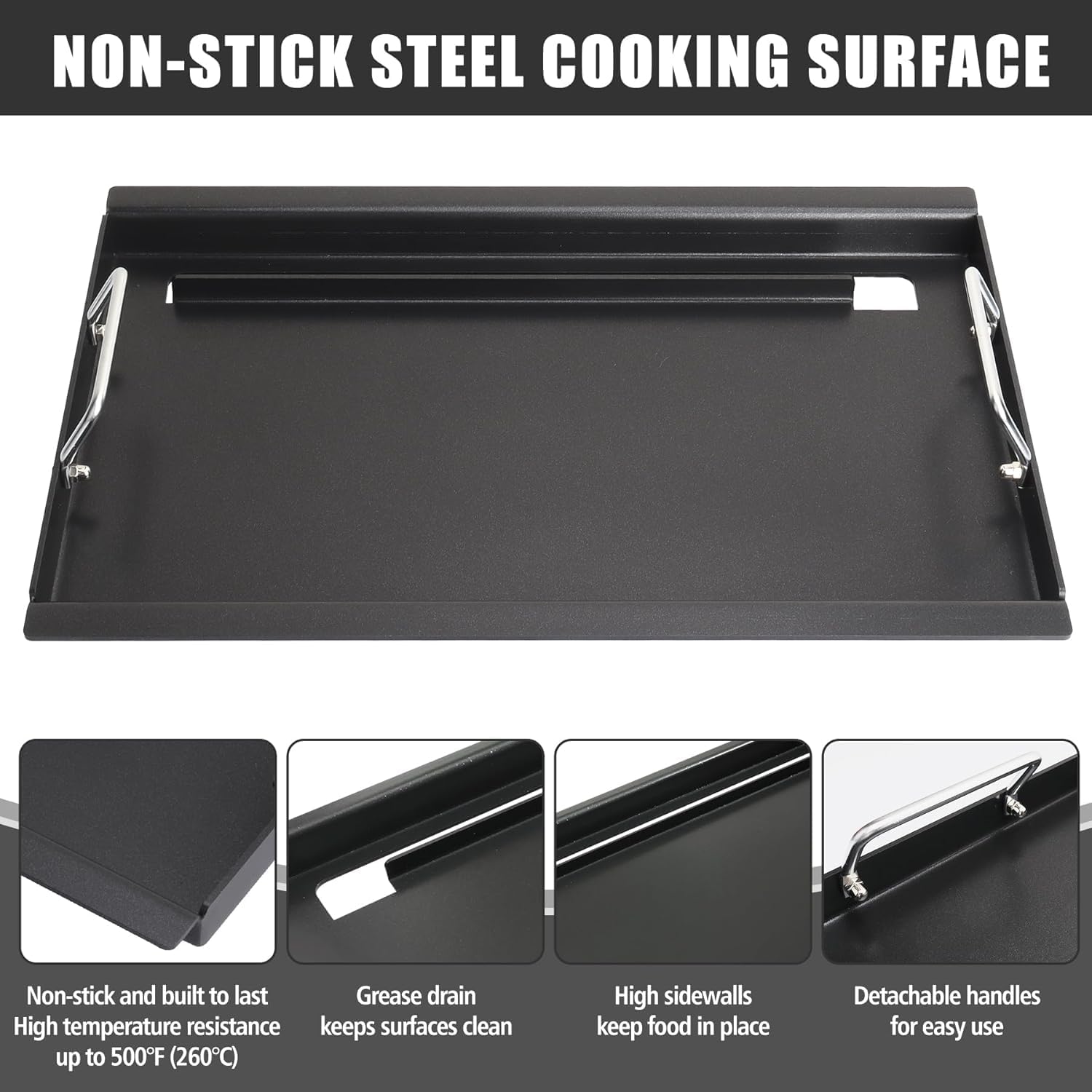 Full Size Griddle with Handles for Kitchen Aid 740-0781 720-0856, Flat Top Grill Insert Replacement for KitchenAid 730-0336D 720-0856V Nexgrill 720-0856 740-0781, Carbon Steel, Non-stick