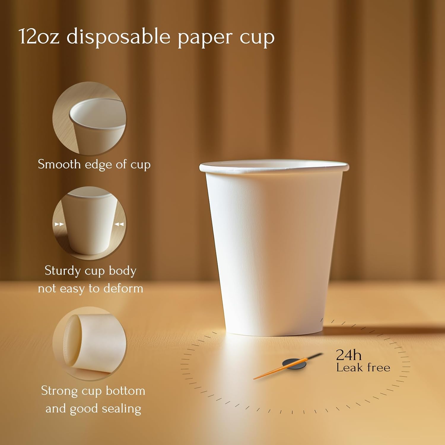 - 【Leak-Proof & Durable】 12 oz disposable coffee cups feature a poly-coated lining to prevent leaks and soggy bottoms. The reinforced rolled rim ensures a secure lid fit, making them perfect for hot and cold cups at home, in the office, or on the go.