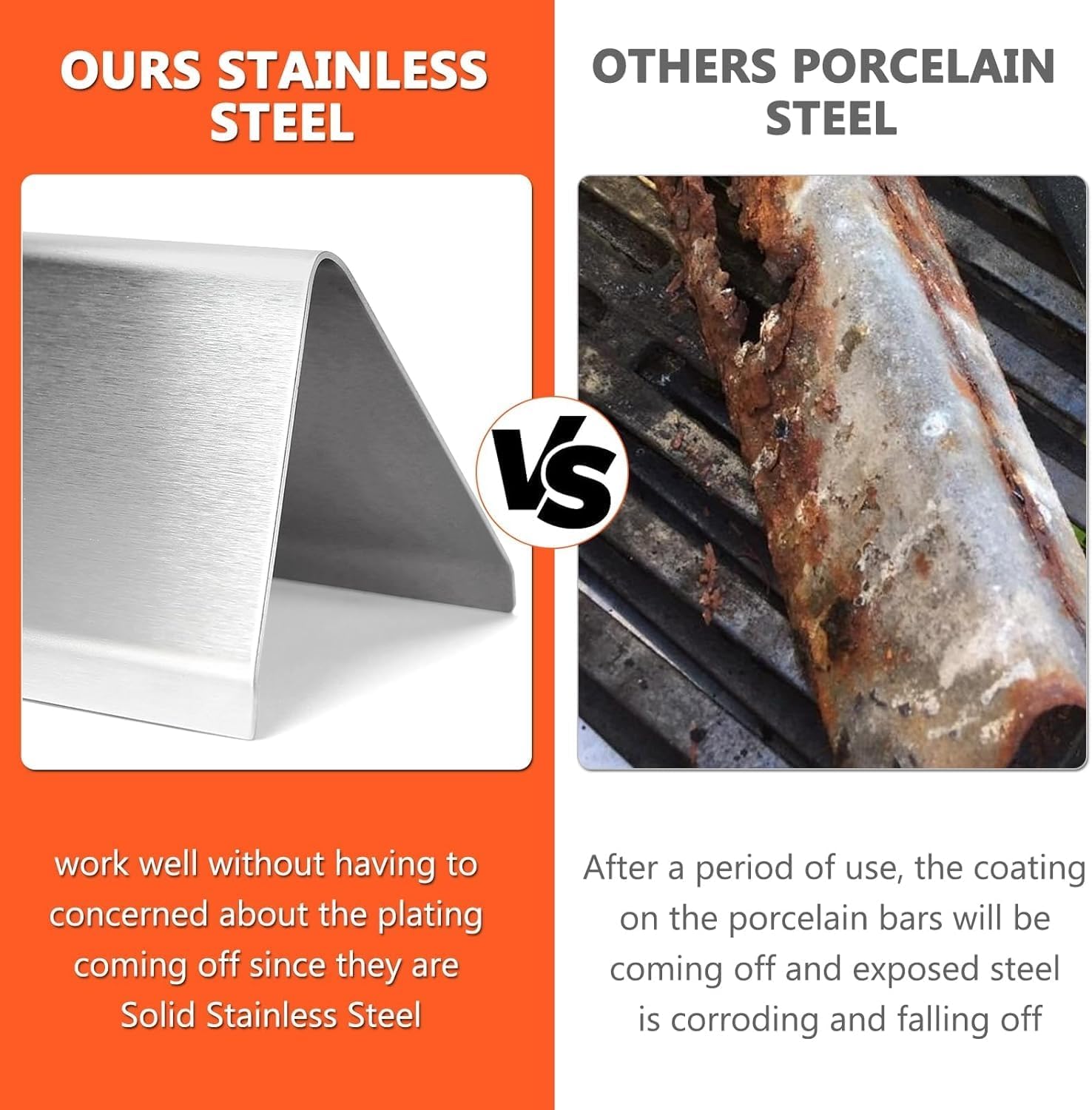 - 🔥【EVEN HEAT DISTRIBUTION】These SUS304 stainless steel flavorizer bars work their magic by preventing food from directly touching the flame. They act as a shield for your burner, ensuring gentle, even heat reaches every morsel. And with no worries about coatings peeling off like with porcelain bars, you can focus on what matters – creating unforgettable grilling memories.