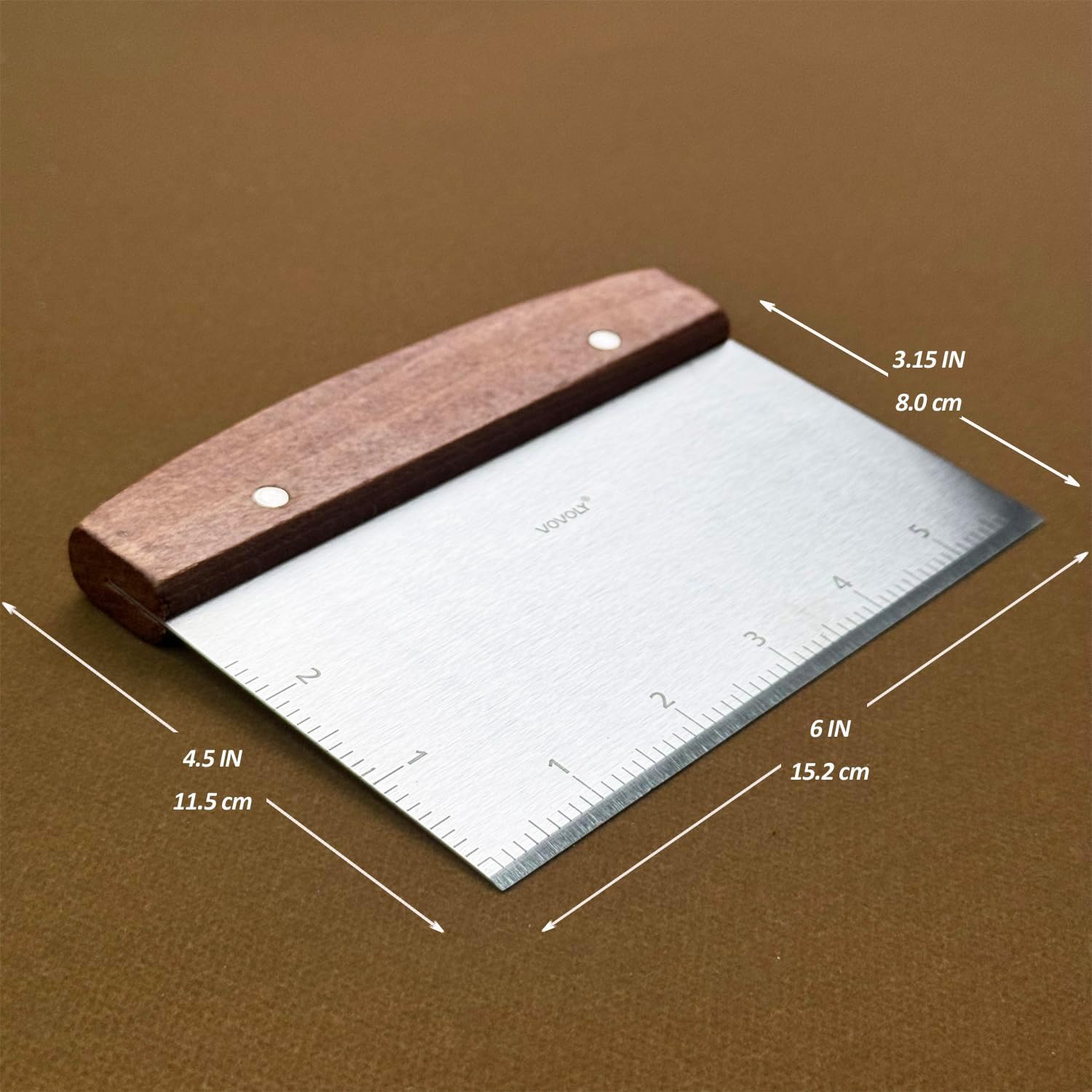 - Firm grip - ergonomic and comfortable non-slip wooden handle. Great for scraping up food ingredients to easily transfer to a mixing bowl or for cleaning your work surface.