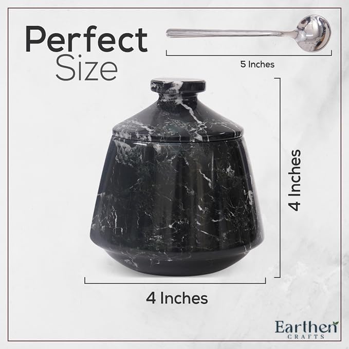 - What's In It: 1 x Marble Salt Cellar with lid and spoon. Comes along with Earthen Crafts branded, secure and fragile packaging.