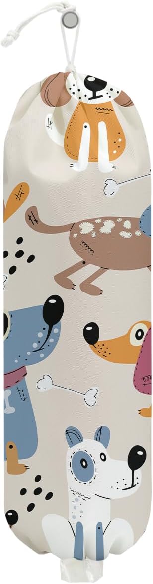 Dog Plastic Bag Holder, Wall Mount Grocery Bag Holder, Plastic Storage bag, Pull Rope Free Adjustment, Plastic Bag Holders for Grocery Bags, Plastic Bag Dispenser for Home Kitchen, Dog Lover Gifts