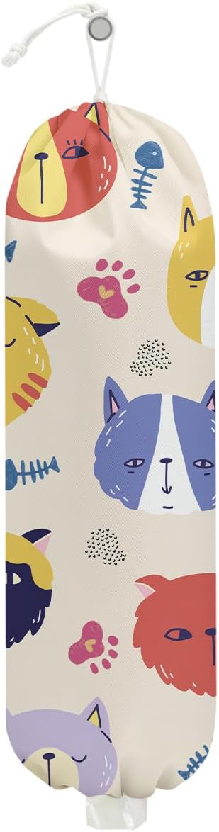 Cat Plastic Bag Holder, Wall Mount Grocery Bag Holder, Plastic Storage bag, Pull Rope Free Adjustment, Plastic Bag Holders for Grocery Bags, Plastic Bag Dispenser for Home Kitchen Camping