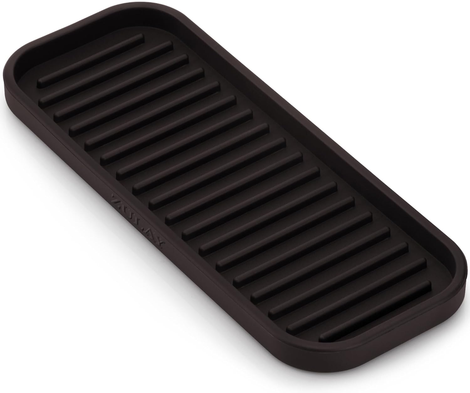 Zulay Kitchen (9x3.5 Silicone Sponge Holder for Kitchen Sink - Flexible Multipurpose Soap Tray Sponge Holder - Sink Organizer Tray for, Bathroom, Makeup, Trinkets & More (Chocolate)
