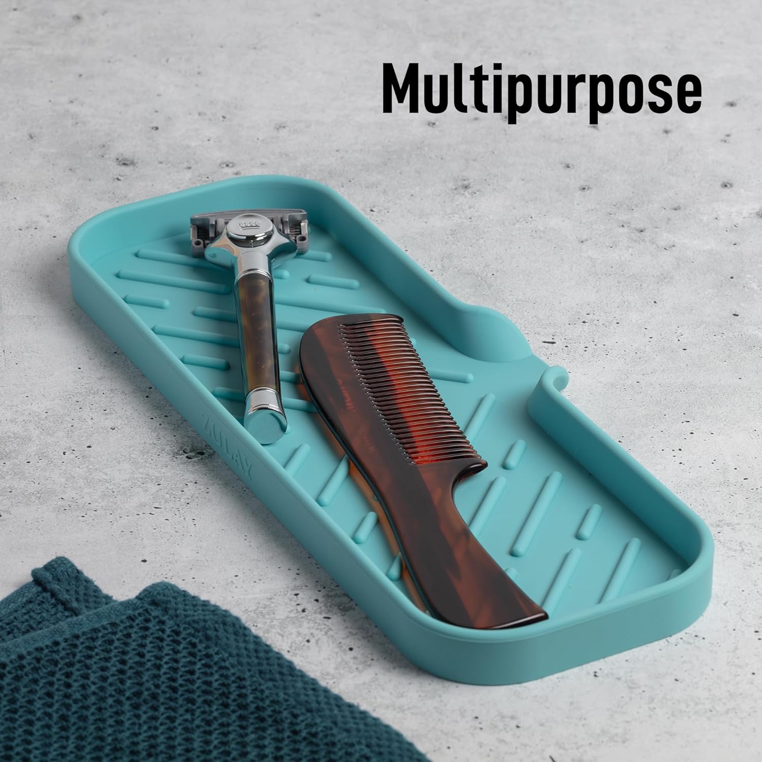 Zulay Kitchen Large Silicone Sponge Holder (12x4) – Flexible Sink Organizer Tray for Kitchen & Bathroom – Multipurpose Soap Dish for Sponges, Makeup, Trinkets & More (Aqua Sky)